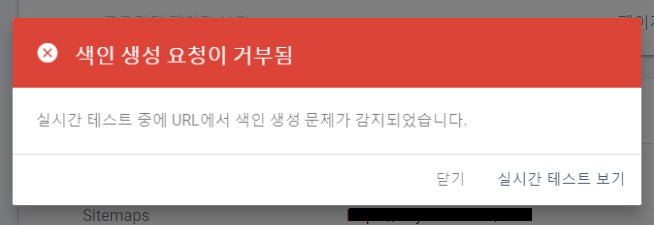 하지만 이렇게 생성 요청이 거부되어 나오는 경우도 있습니다. 이경우에는 구글에서 가져왔던 주소들이 바뀌거나 했을때 나오는것인데요. 제목을 바꾸거나 할경우 거부로 나오기도 합니다. 이 페이지를 색인 신청하려면 주소를 다시 작성하여 색인을 신청해야 합니다.