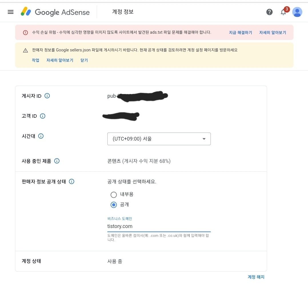 구글 애드센스 ads.txt 문제/sellers. json 문제 /자동 광고 설정하기