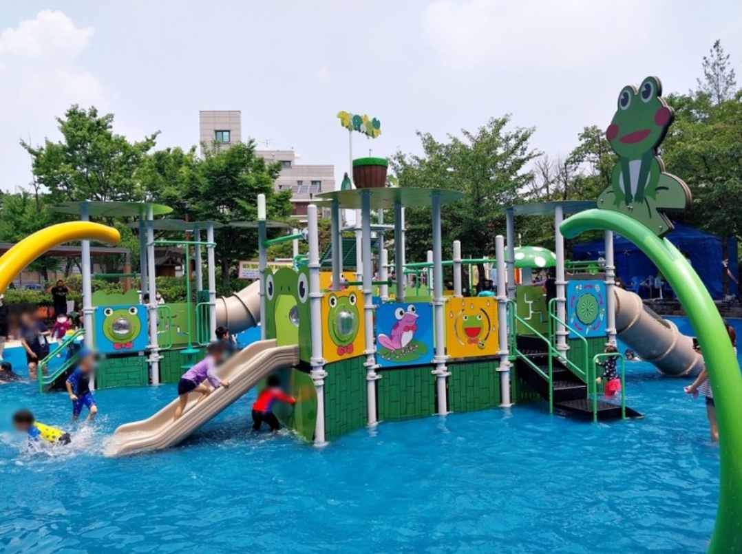 시원함을 보여주는 개구리 모양의 물놀이터는 여름에 더욱 시원함을 느낄 수 해줍니다.