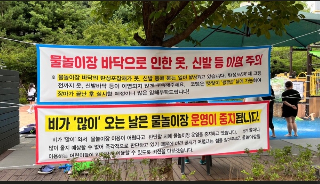 비가 많이 오는 날에는 물놀이장 운영이 중단됩니다.
