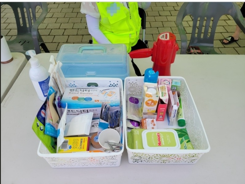 간단한 구급약품은 운영본부에 준비되어있어 비상시 간단하게 치료하실 수 있고 근처에 푸드트럭이 있어 간단하게 사드실 수 있습니다. 하지만 매점은 없기 때문에 간단하게 드실 수 있는 도시락이나 간식거리를 준비하시는 걸 추천드립니다.