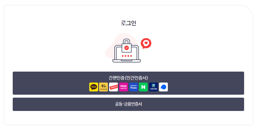 로그인을 위해 간편인증 또는 공동, 금융인증서로 로그인을 해주세요.