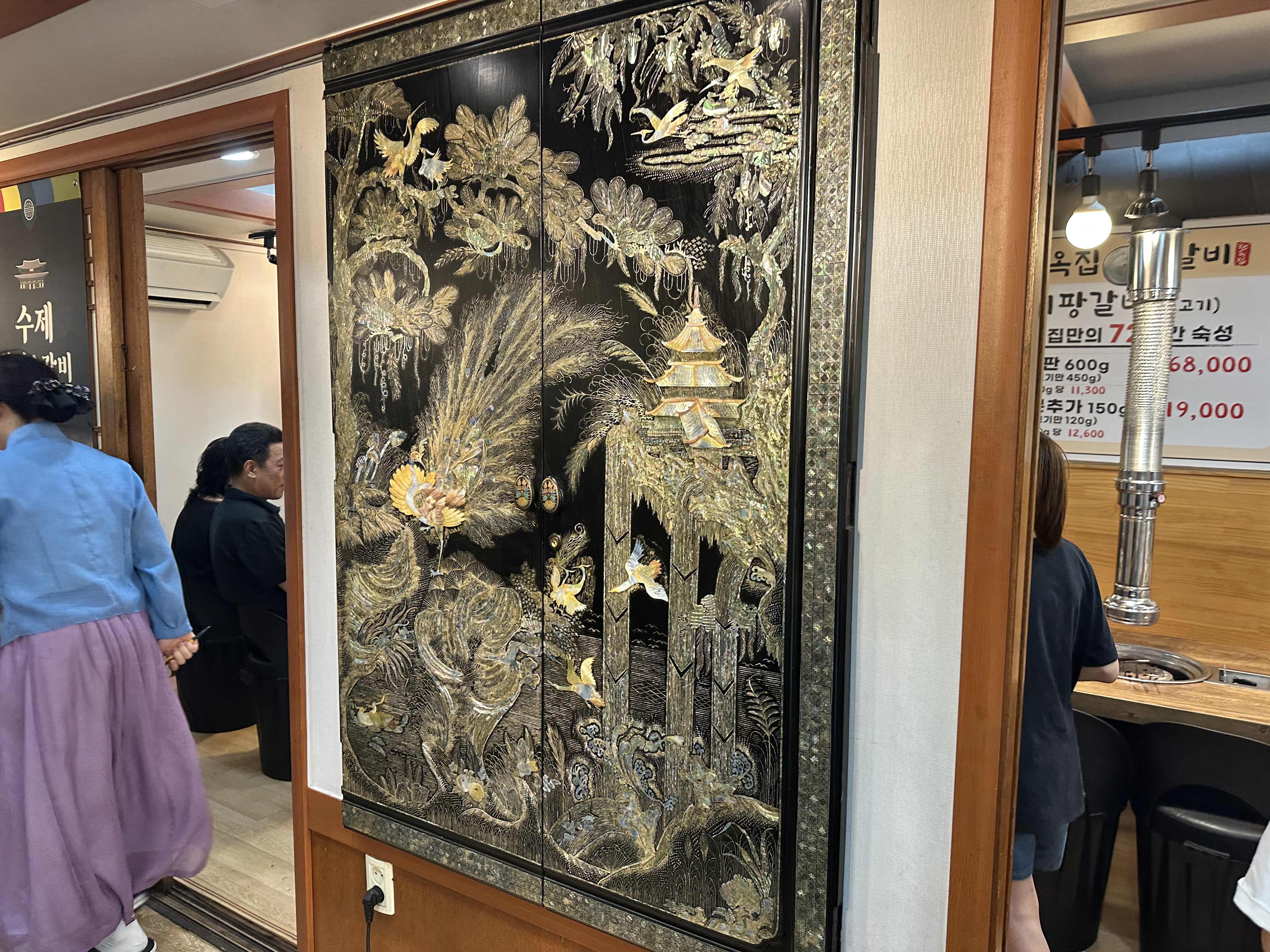 내부는 한쪽 벽면에 자개장처럼 되어 꾸며져 있어 전통적인 분위기가 물씬 풍겼고,