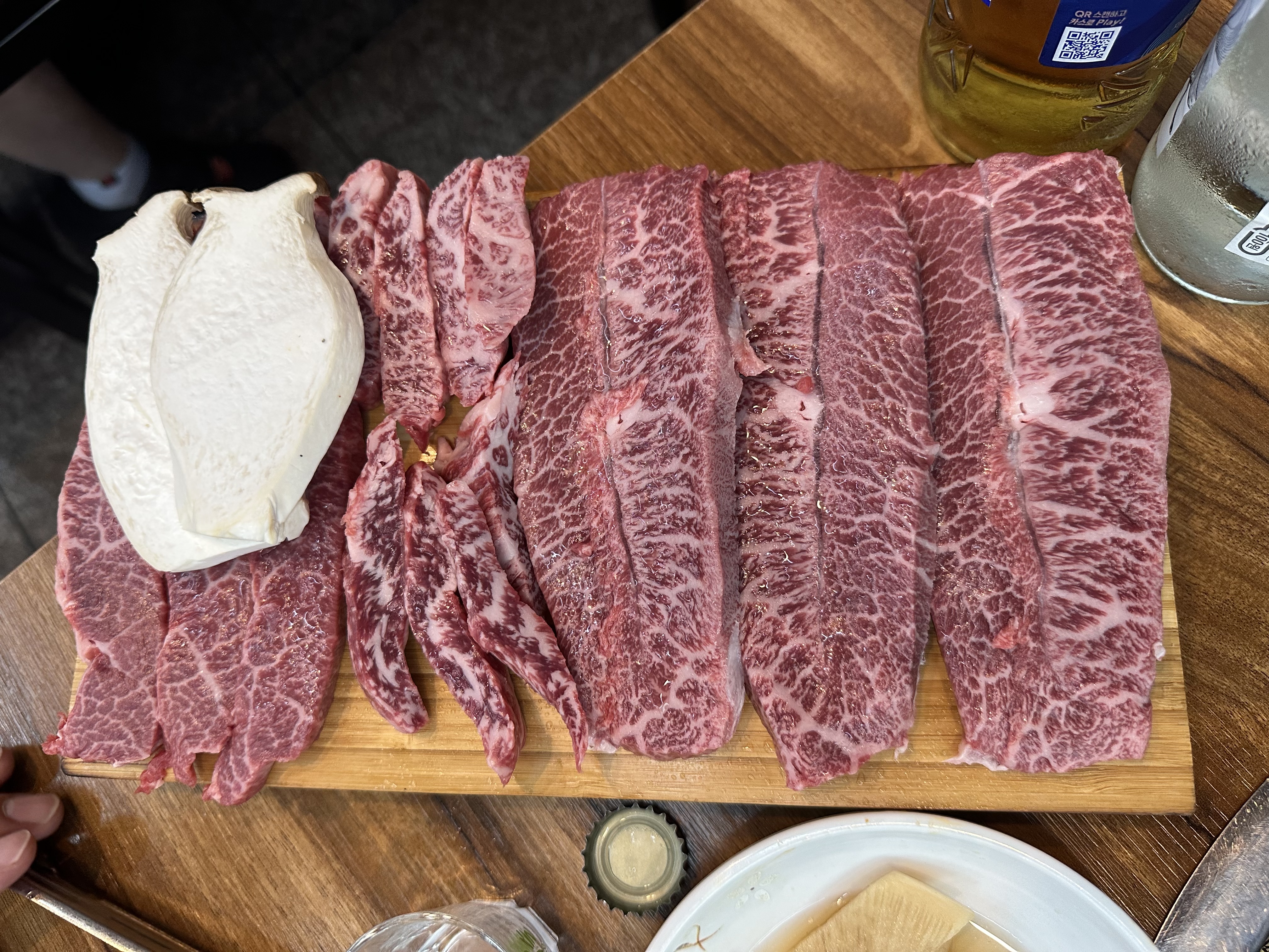 이날은 소고기와 꼬들살, 육사시미를 주문했어요.