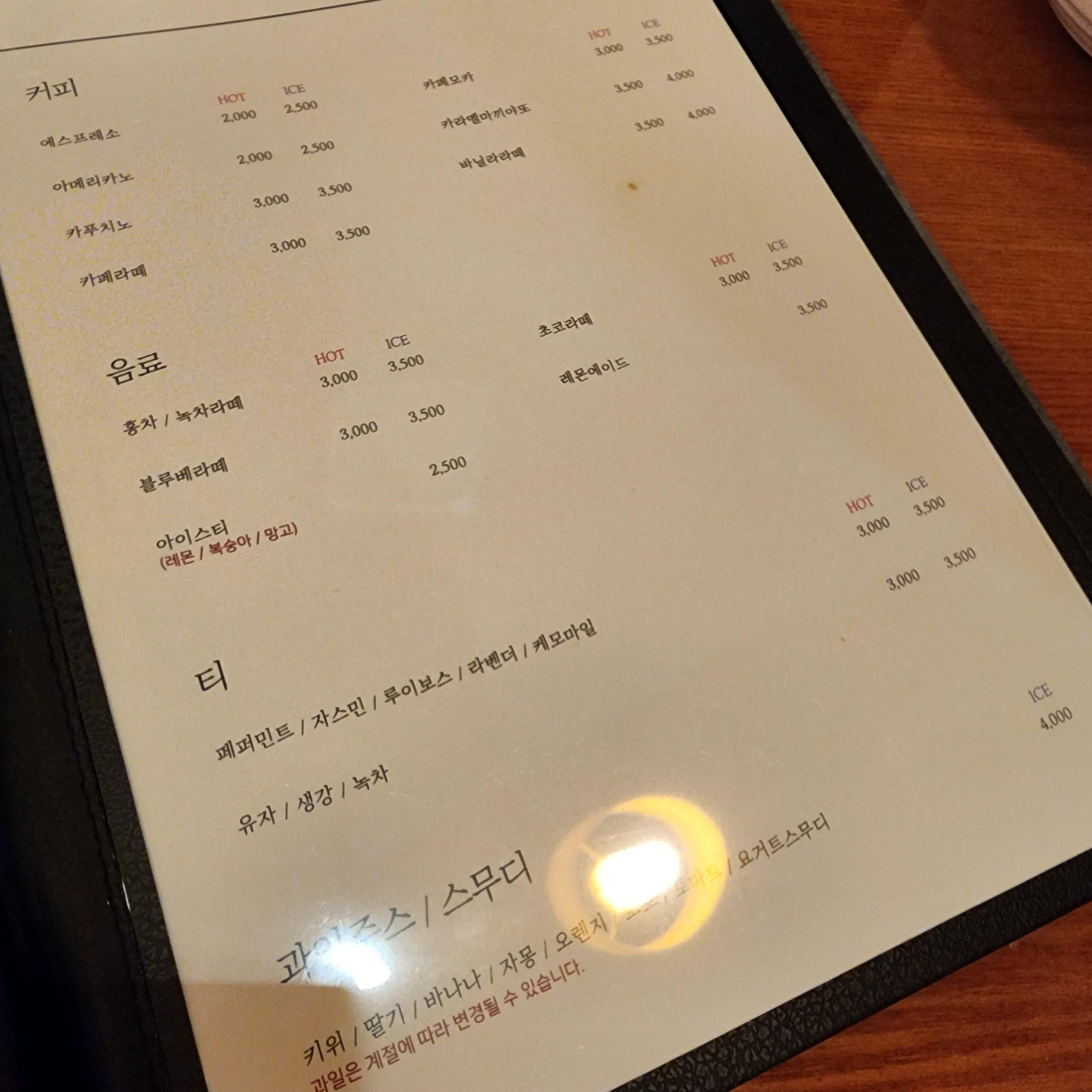 메뉴 주문 후 메뉴판을 다시 봤는데 라테라스에서는 아이스티가 2500원이라니 다른 카페에서는 절대 볼 수 없는 가격이네요.