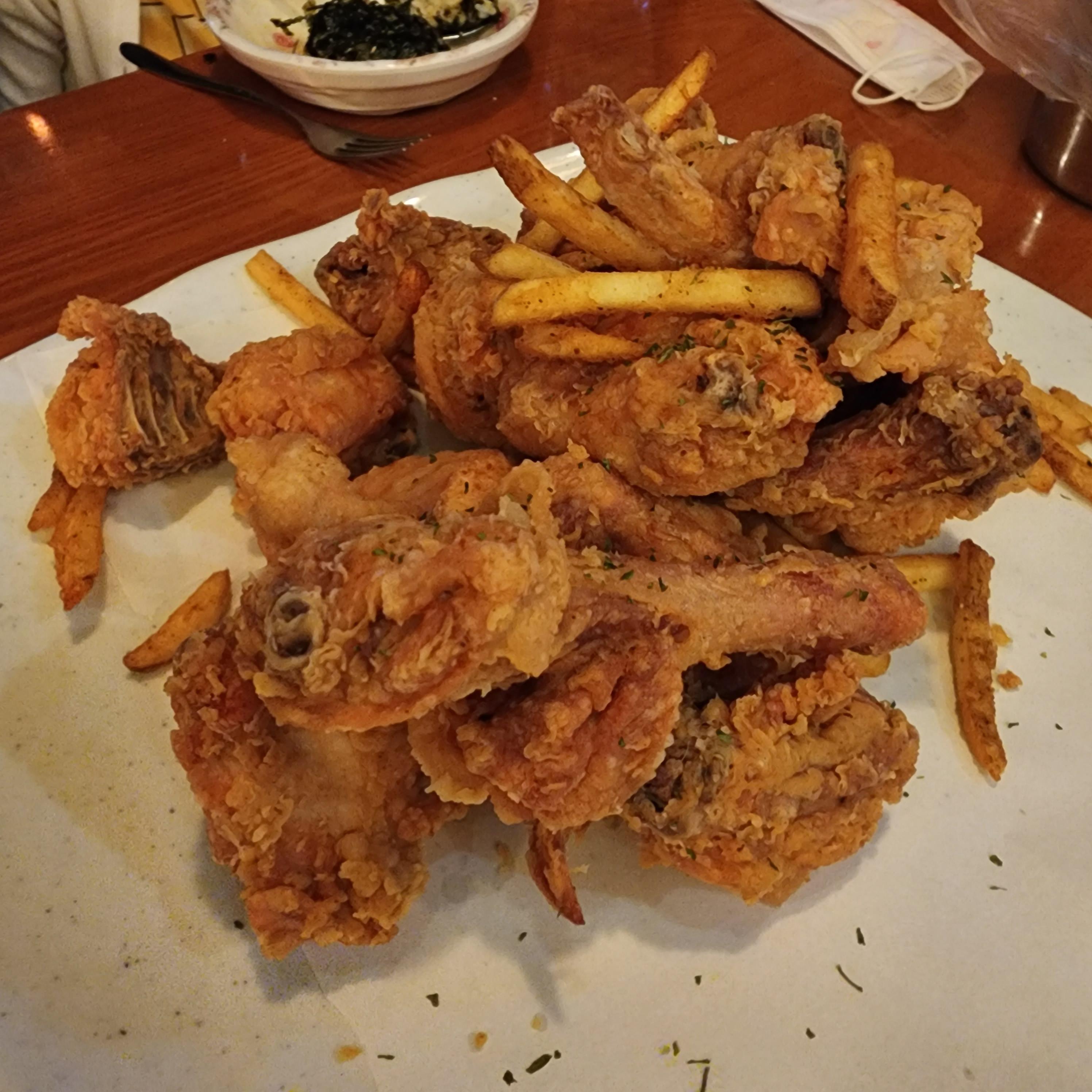 주로 집에서 배달을 시켜먹다 보니 갓 나온 후라이드를 먹을 일이 없었는데 바로 나온 후라이드라 그런지 맛이 있었습니다. 김이 모락모락 나면서 치킨은 양념이 잘되어있어 아이들이 맛있다며 잘 먹었네요.