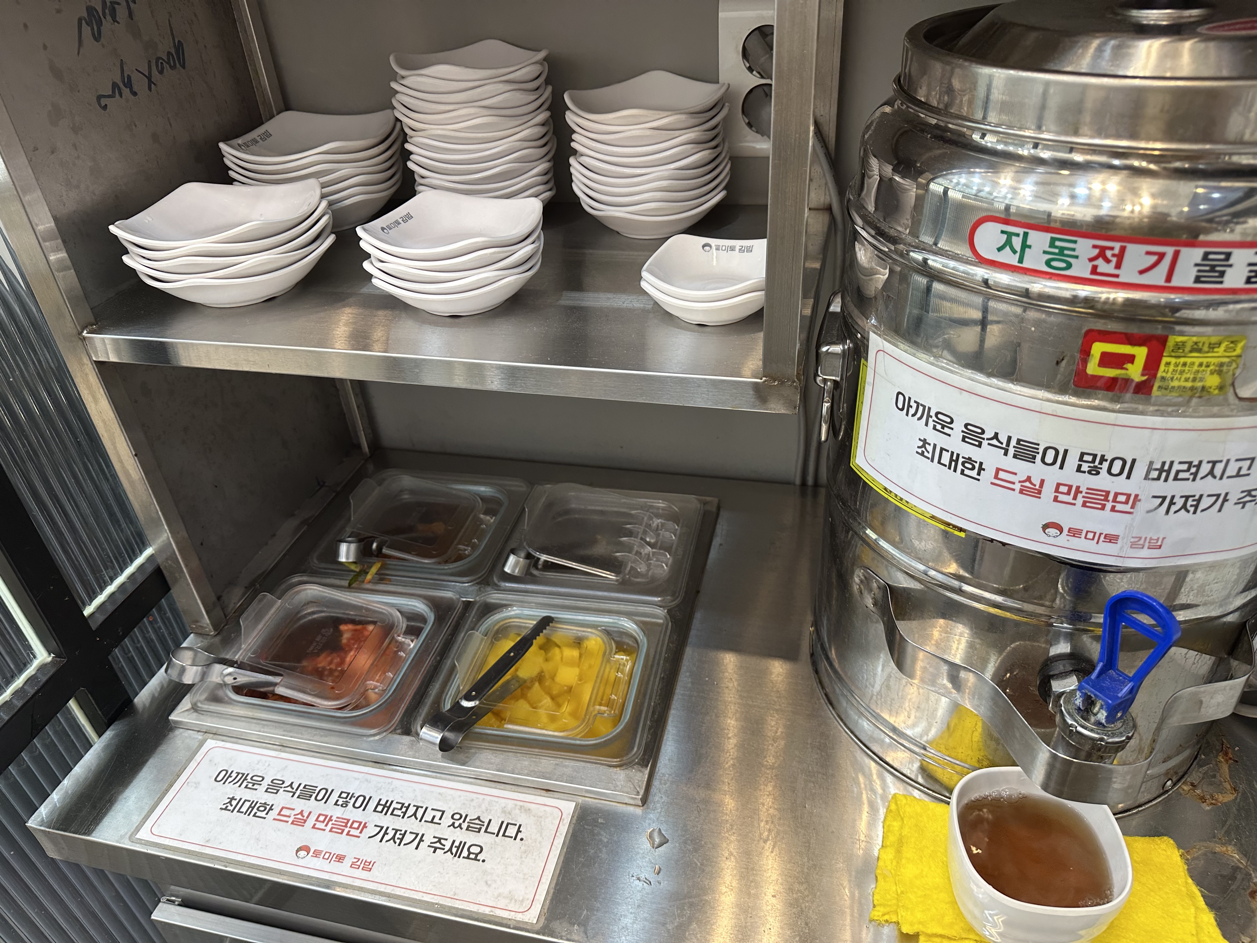 주문 후엔 셀프로 물과 반찬을 가져오면 돼요.