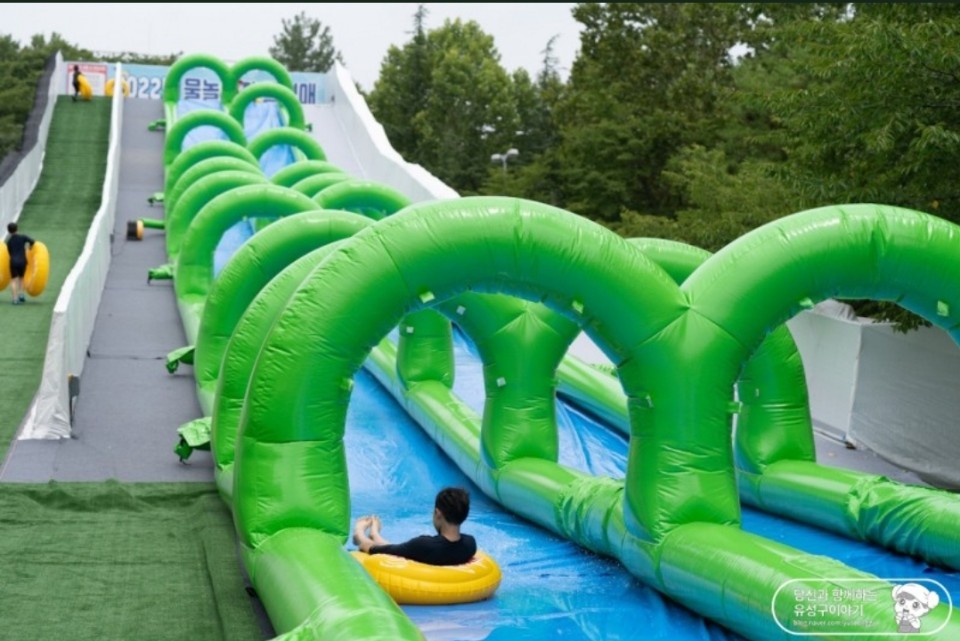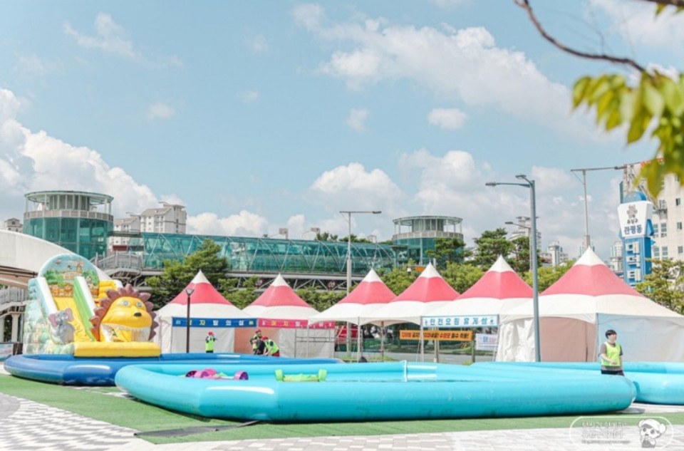 엑스포 근린공원 잔디광장에 남,여 탈의실이 준비되어 있으며 쉼터, 샤워부스와 같은 편의 시설이 갖춰있고 쉼터에는 돗자리를 깔고 쉬실수도 있습니다. 에어풀장과, 워터슬라이드, 캐리비안 베이처럼 물폭탄을 맞을 수 있는 놀이 시설이 준비 되어있으며 아이들이 놀기에 정말 행복한 곳입니다. 에어바운스 워터슬라이드에는 안전관리자 분들이 계셔서 안심하실수 있습니다.
