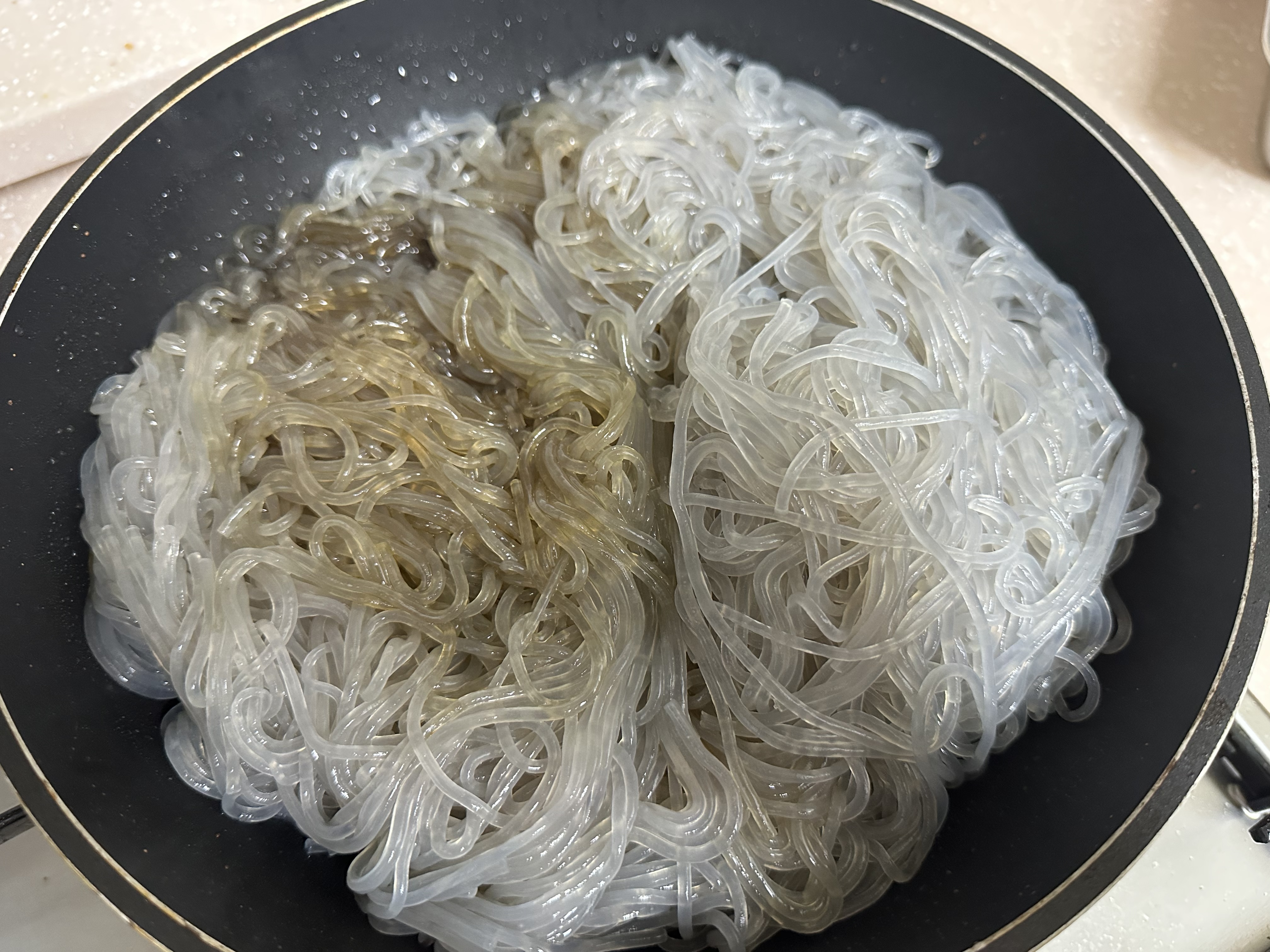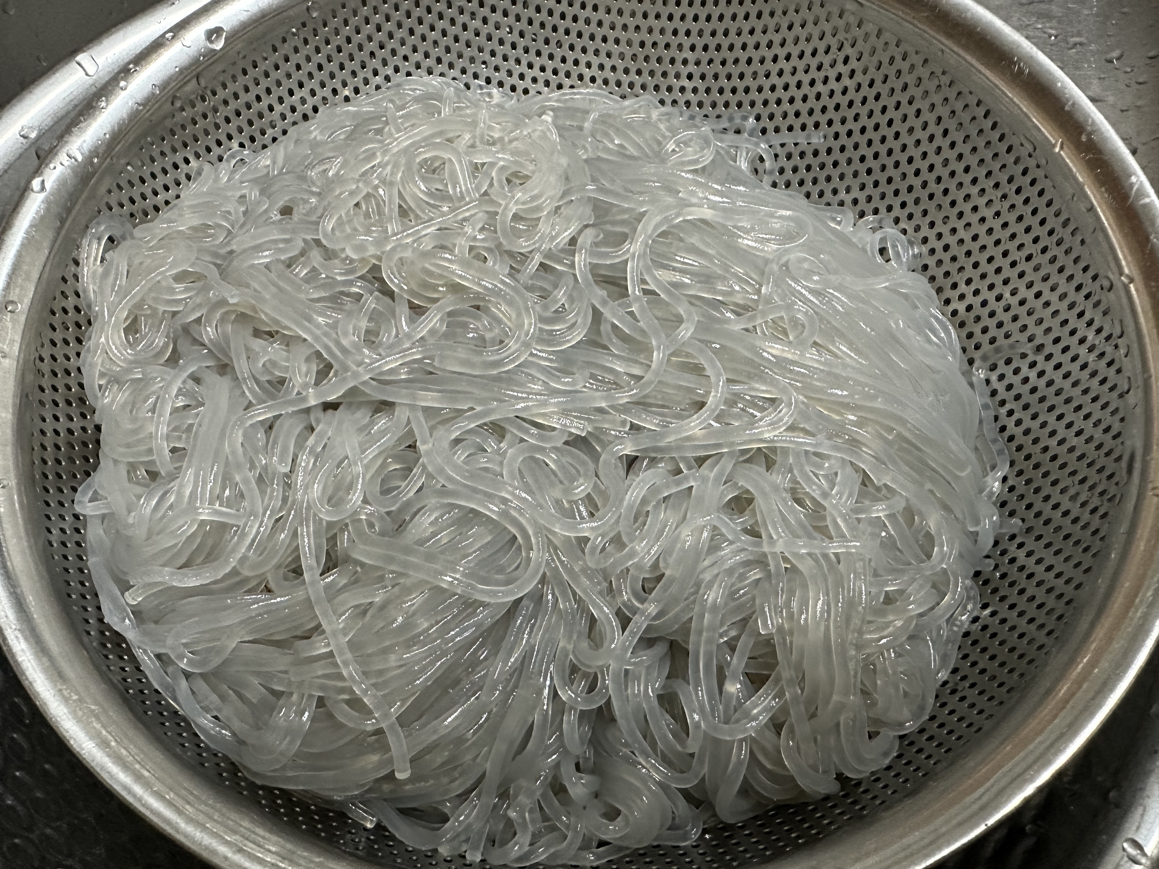 * 불린 당면은 끓는물에 3분정도 끓이고 차가운물에 씻어 식혀주어 물기를 뺐어요.