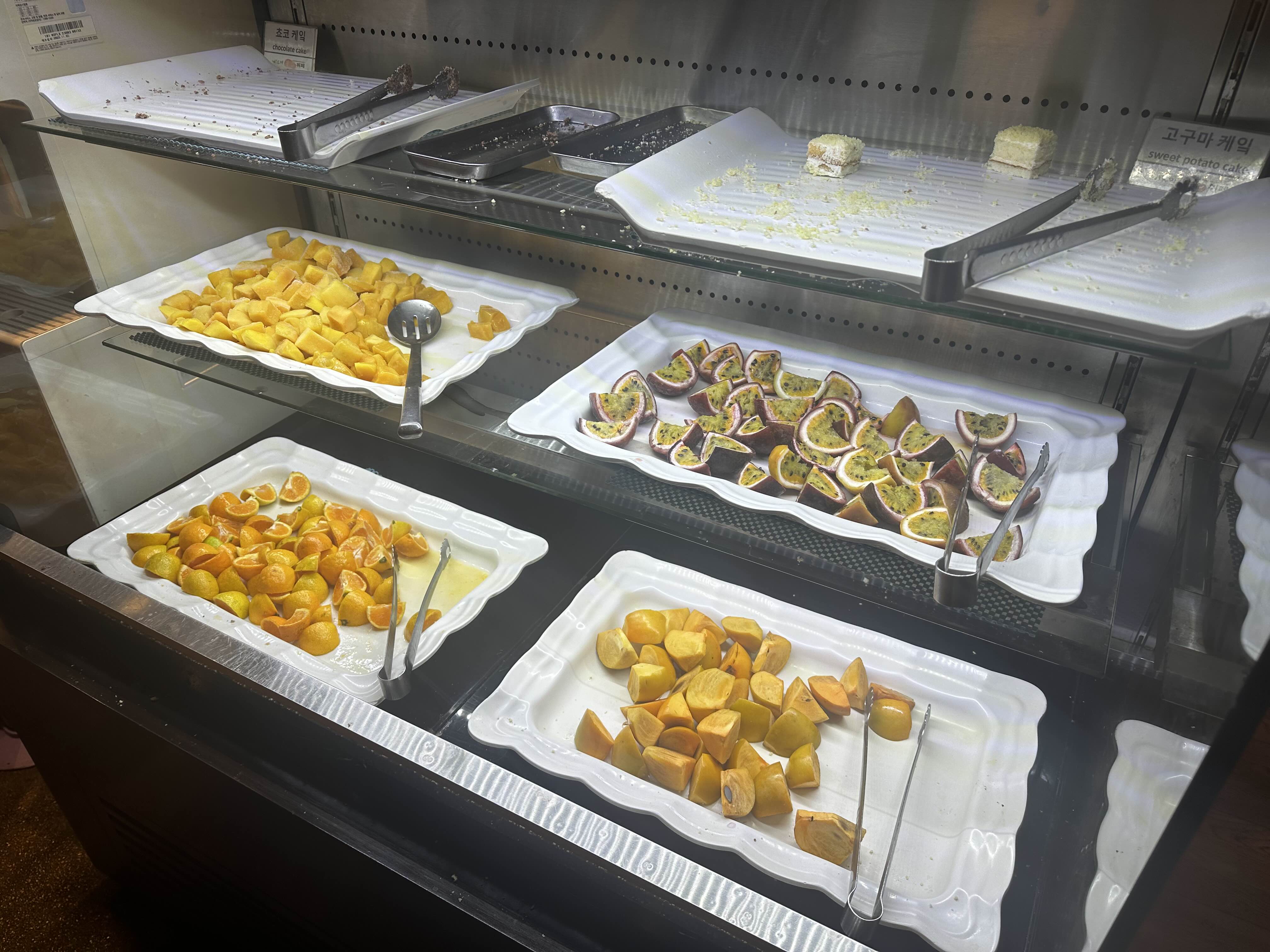 디저트들은 아주 많지는 않지만 제가 집에 가기전 찍어서 그런지 텅텅 비었네요. 그 이후에 저녁 시간대라 채워 놓셨겠지만요 ㅎㅎ