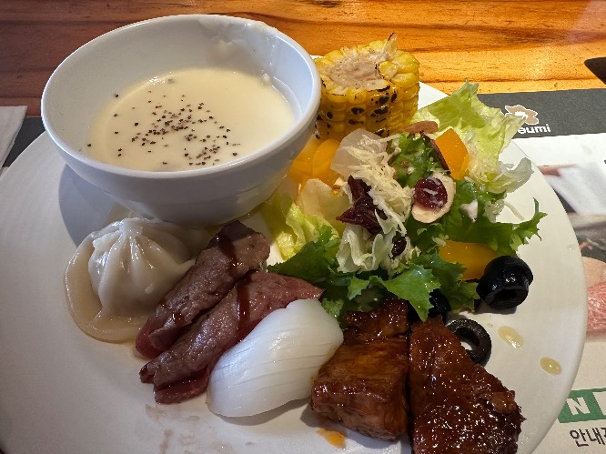 자리를 잡았으니 어디한번 음식들을 퍼 와볼까?