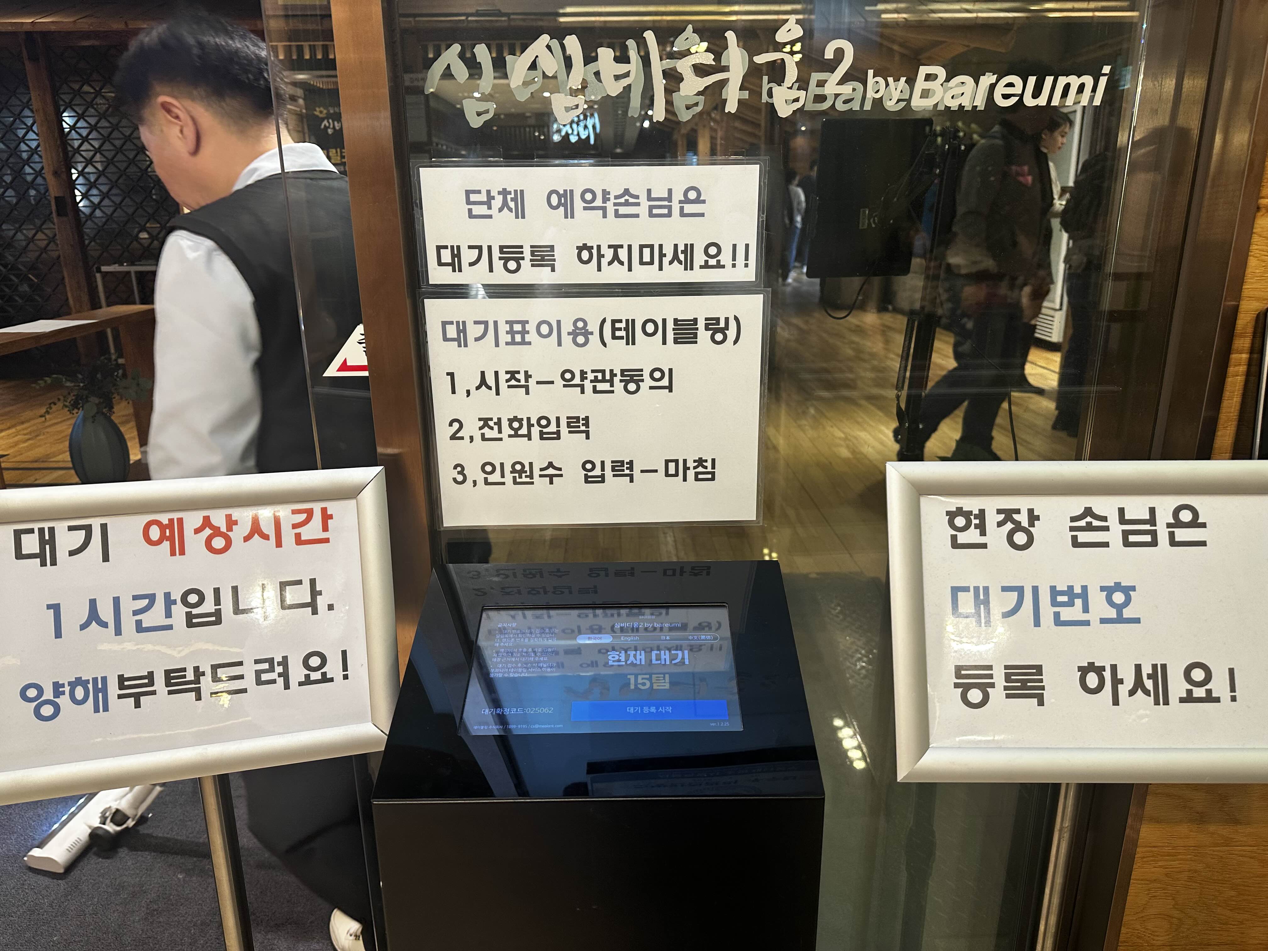 저녁시간대에는 많은 사람들로 분빌꺼 같아 이른 저녁을 먹기로 했다. 3시반쯤 도착했는데도 대기 하는 사람들이 있었고 테이블링으로도 대기 할수 있어 올라오기전 남편이 대기 걸어놓고 도착 후 코드릉 입력 완료!