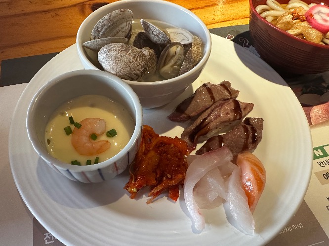 우동은 아이들이 먹고 싶대서 여러개 가져오기는 했는데 뷔페 우동은 어딜가나 맛은 비슷 한거 같아요. 근데 우동 주시는 분이 좀 불친절한 느낌 이였습니다. 일하는게 귀찮으신 느낌을 받았네요.