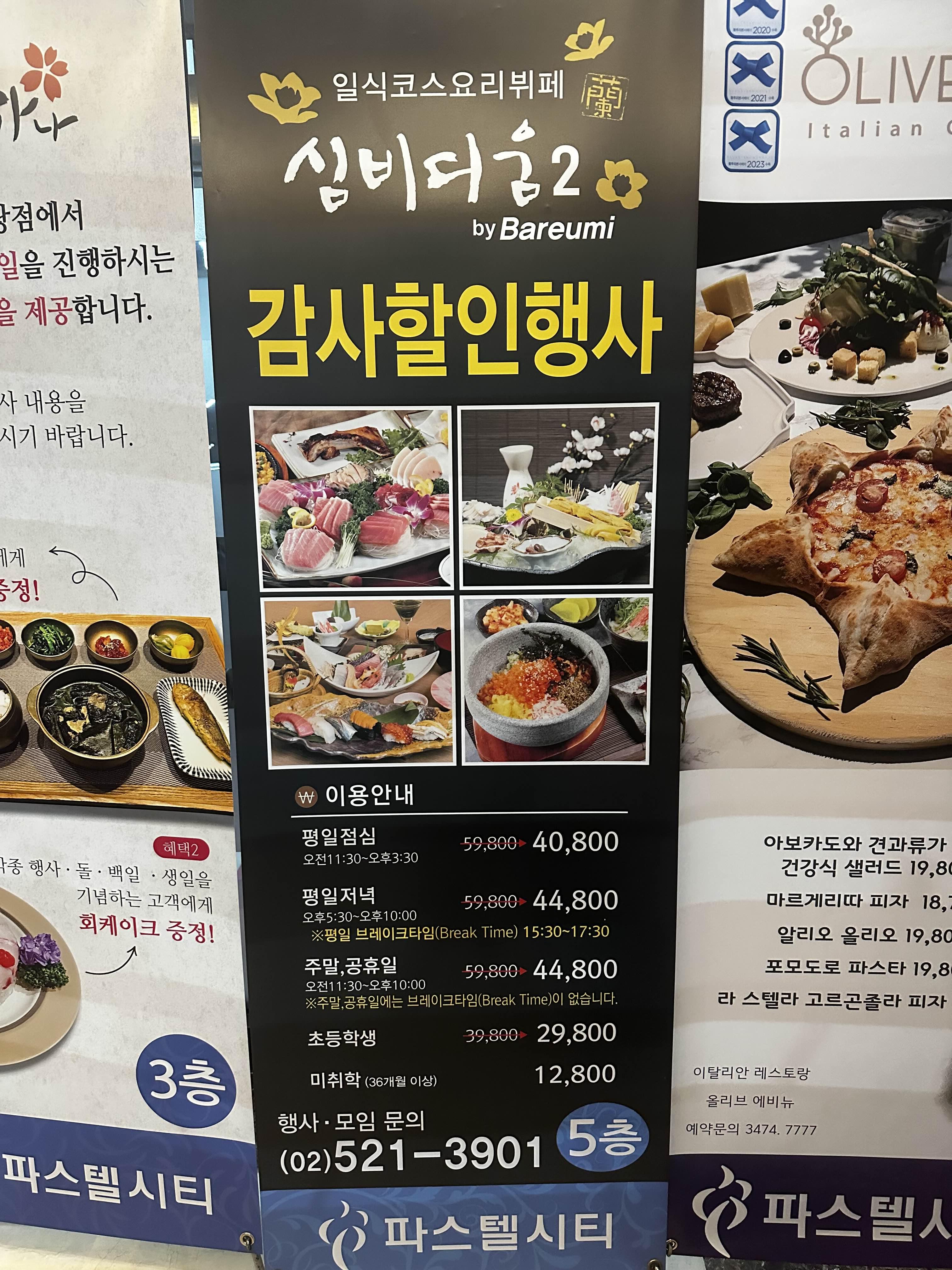 어디를 갈까 고민하던중 회를 좋아하는 아이들과 함께 일식뷔페 심비디움2에 대하여 이야기 하려고 한다. 심비디움2는 사당역과 연결된 파스텔시티 5층에 위치해 있다.