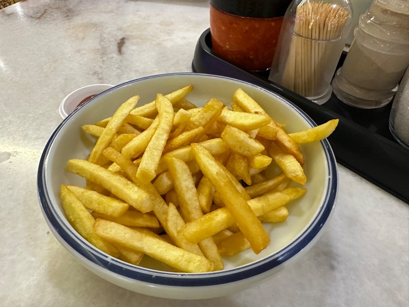 삼남매가 고른 감자튀김. 아침부터 왠 감자튀김이냐 하겠지만 전날 저녁 도착하자마자 아이들이 편의점에서 삼각김밥이 팔길래 엄청 맛없게 먹었던 터라 다른 메뉴도 맛이 없으면 누구나 맛있게 먹을 수 있도록 안전빵 메뉴를 주뭌한 감자튀김이다.