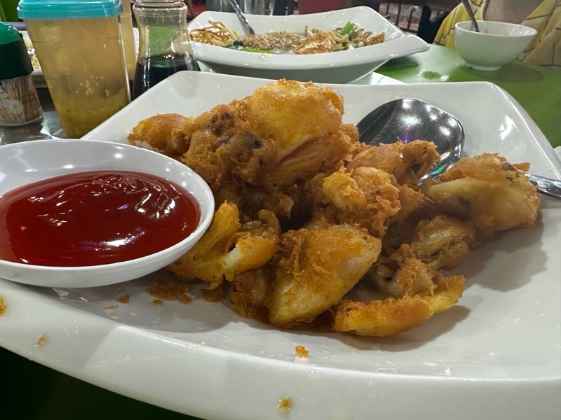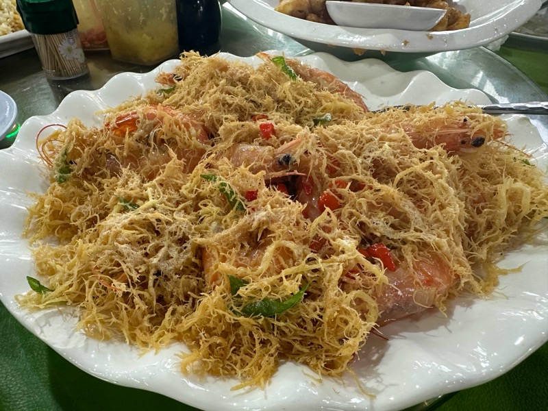 코타키나발루 여행에서 씨푸드 음식점마다 다들 저터드라이새우를 그렇게들 많이 시켜먹더라구요. 저희도 간김에 먹어봐야지 싶어서 먹어봤어요. 맛은 합격! 고소하기도 하고 위에 튀김(?)같은것과 함께 먹으면 맛있어요.