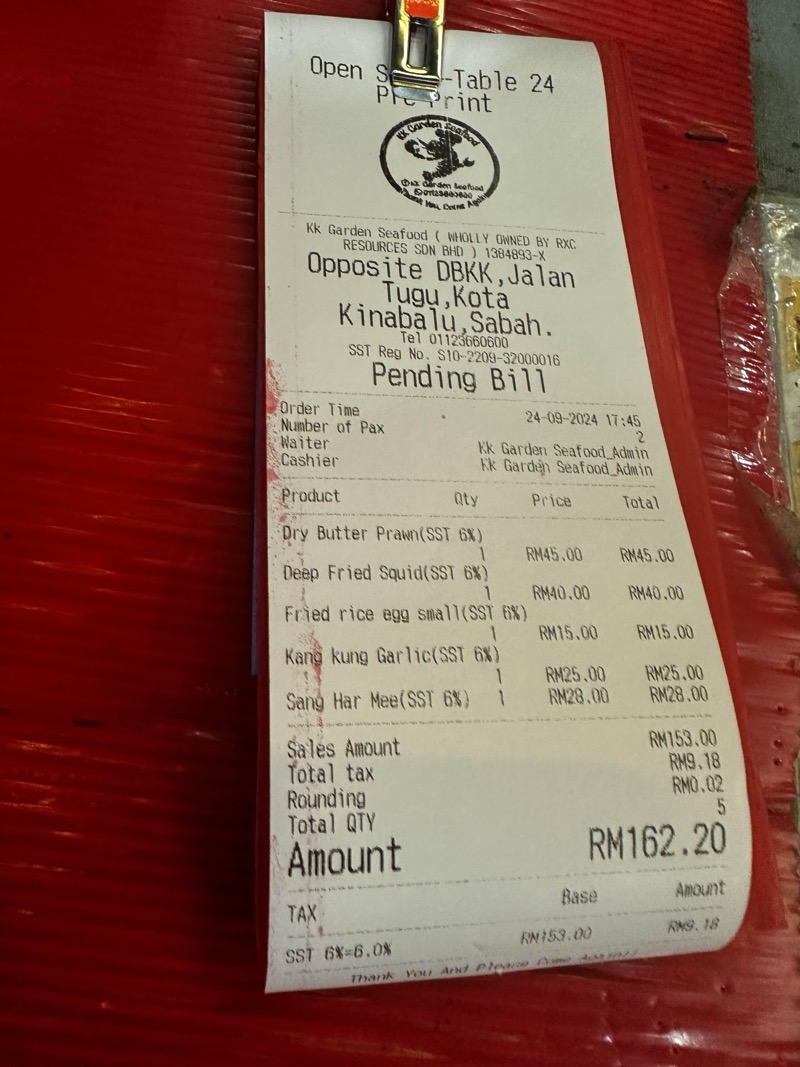 총 163.20링깃으로 48,700원 정도에 다섯가디 메뉴를 먹었답니다. 한국에서는 저렇게 메뉴 많이 시키면 기본 10만원 넘을텐데 말이죠.