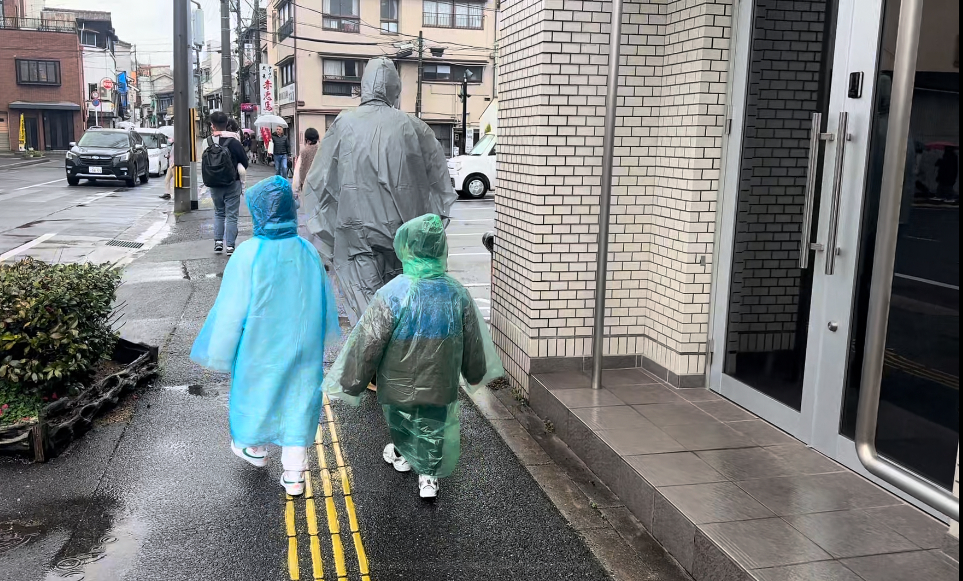 아직도 오는 비를 계속 맞으며 돌아다닐 수 없으니 우비를 꺼내입고 걸어가는데 왜 자꾸 웃음이 나죠? 아이들용으로 산 우비는 쓰레기봉지를 뒤집어 쓴듯한 모양 그자체 ㅋㅋ