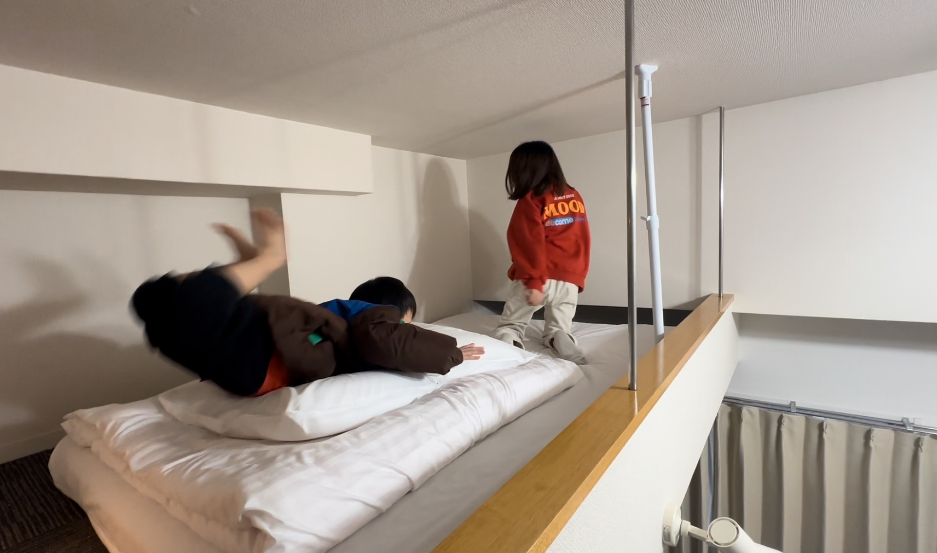 아이3명과 일본여행이다보니 접근성이 좋은곳으로 찾다보니 cocostay는 최고의 숙소. 방안은 더블침대와 쇼파베드 그리고 복층이지만 아이들이 좋아하는 구조