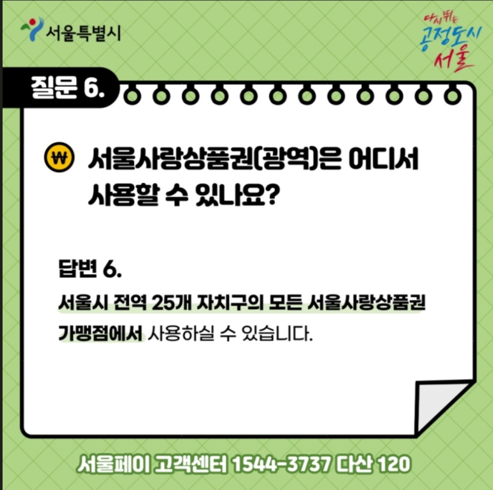 ◐ 사용처 : 서울시 전역 지역사랑 상품권 가맹점