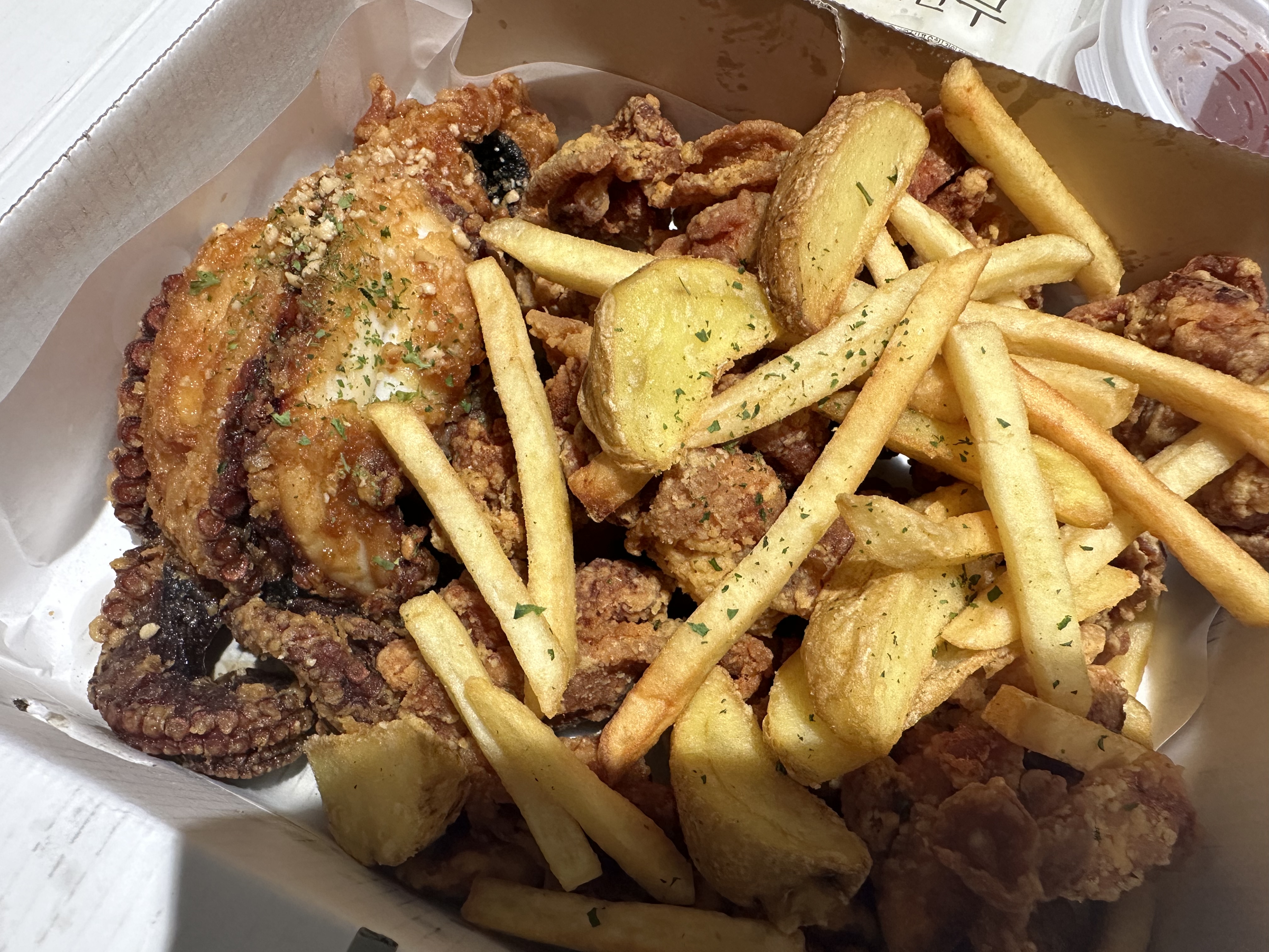 리조트 내에 있는 문어치킨을 먹어보기로 했어요.