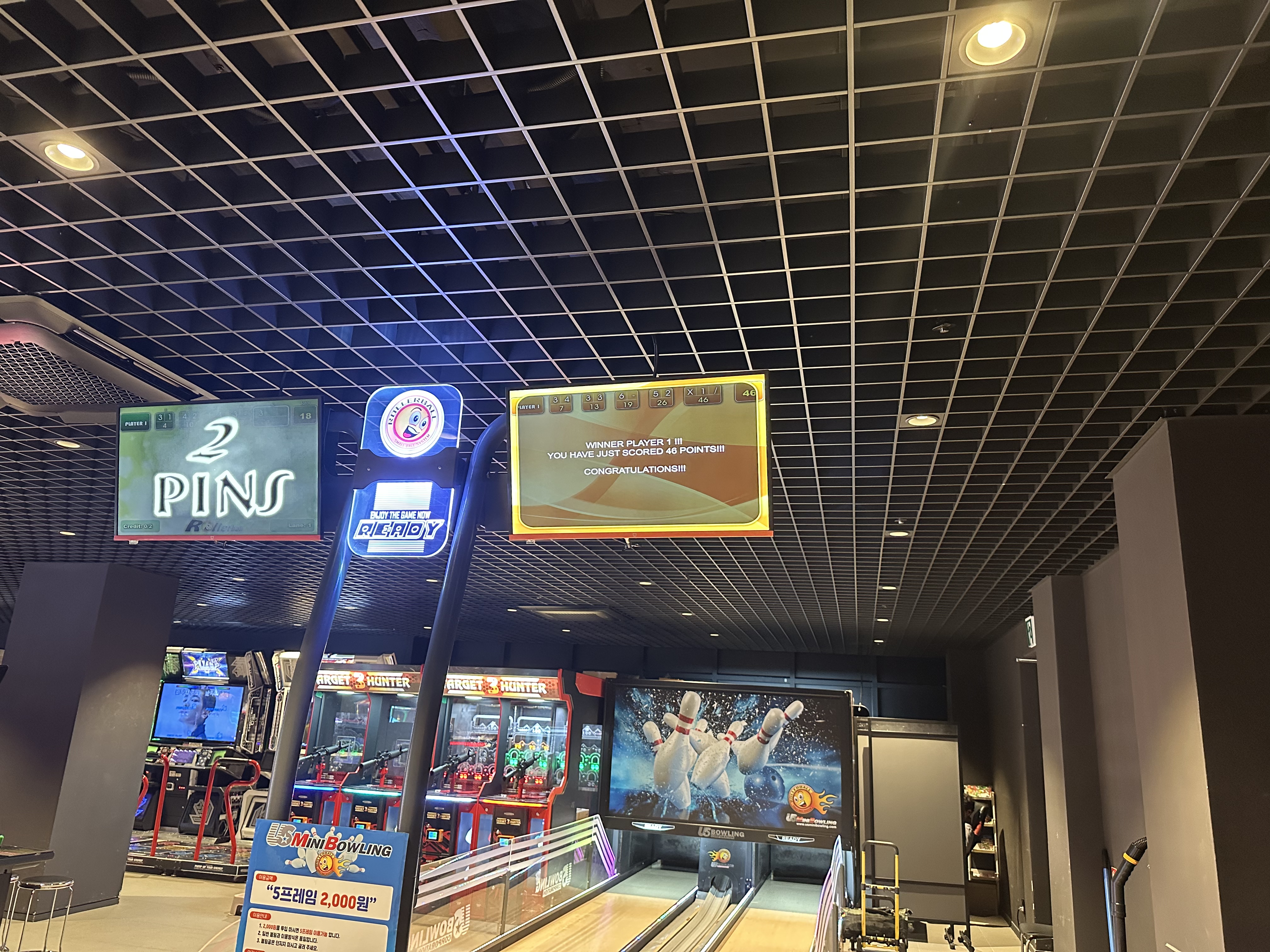 - 볼링 게임: 총 5게임 플레이 가능, 처음엔 감을 못잡았지만 첫째가 마지막엔 스트라이크까지 성공!