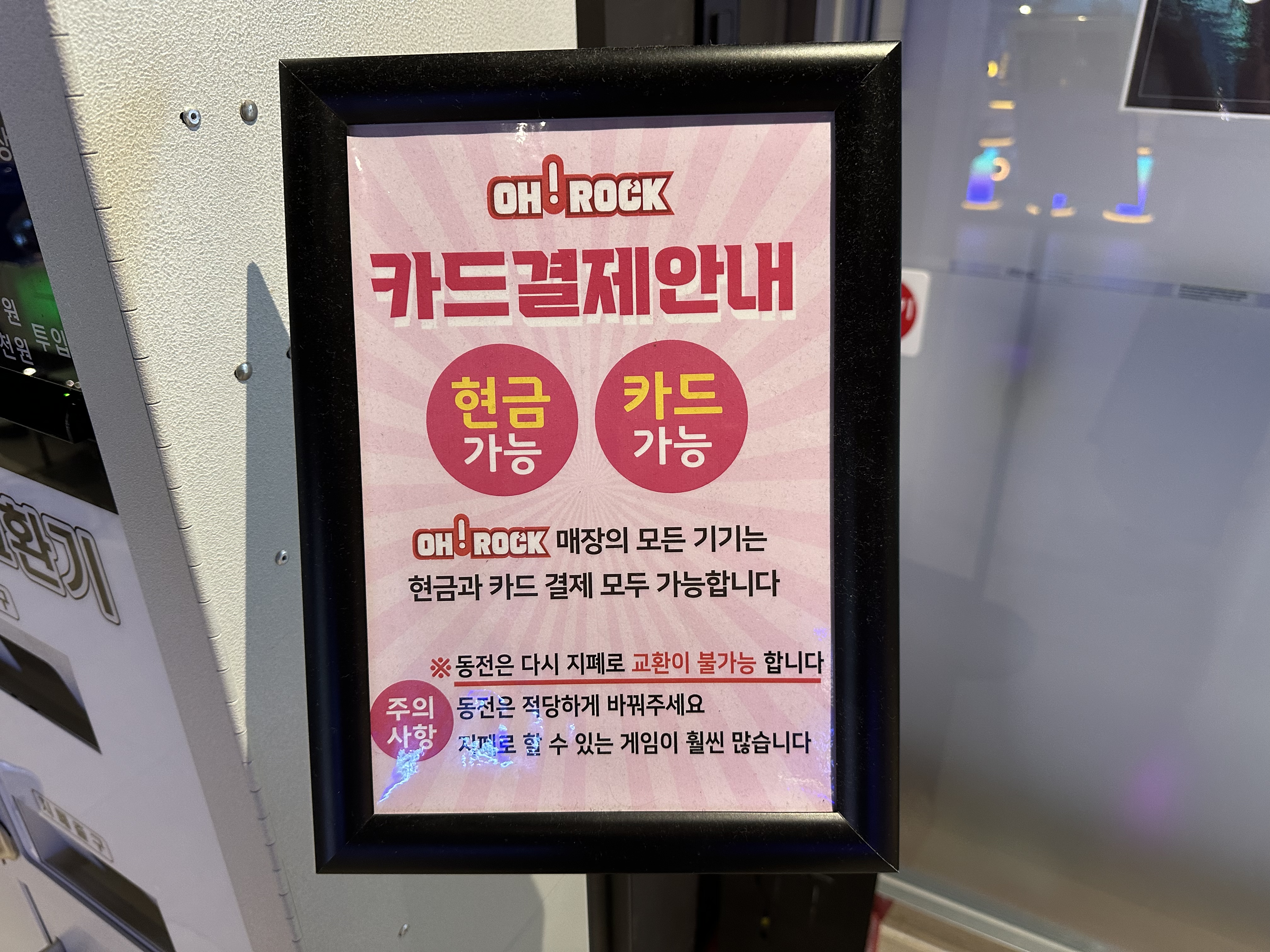 요즘 오락실은 카드 결제가 가능하더라고요.