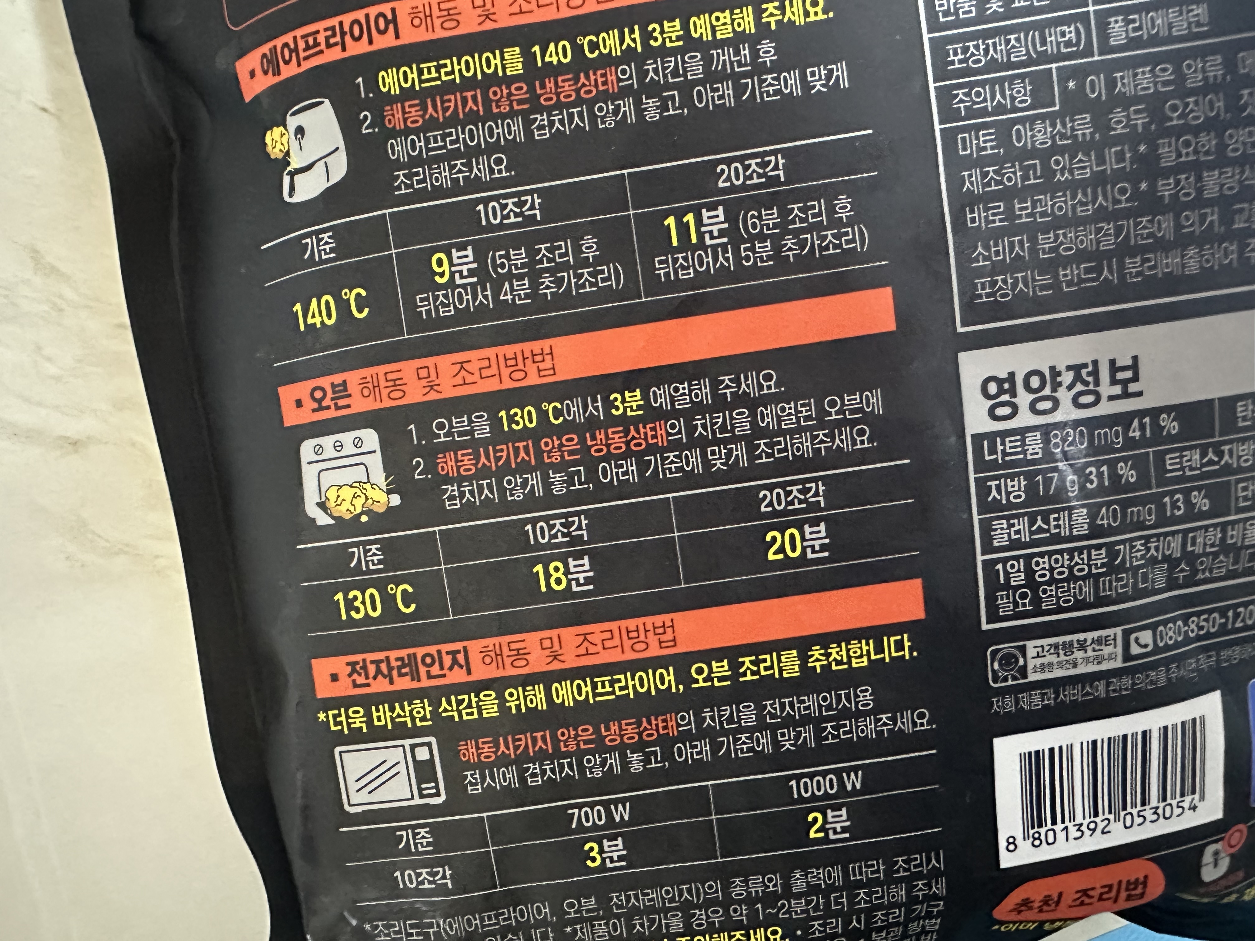 치킨소바바 허니순살은 여러 가지 방법으로 데울 수 있지만, 우리 집은 오븐을 활용했어요. 에어프라이어나 팬 조리도 가능하지만, 오븐이 있으면 더 골고루 바삭하게 구워진답니다.
