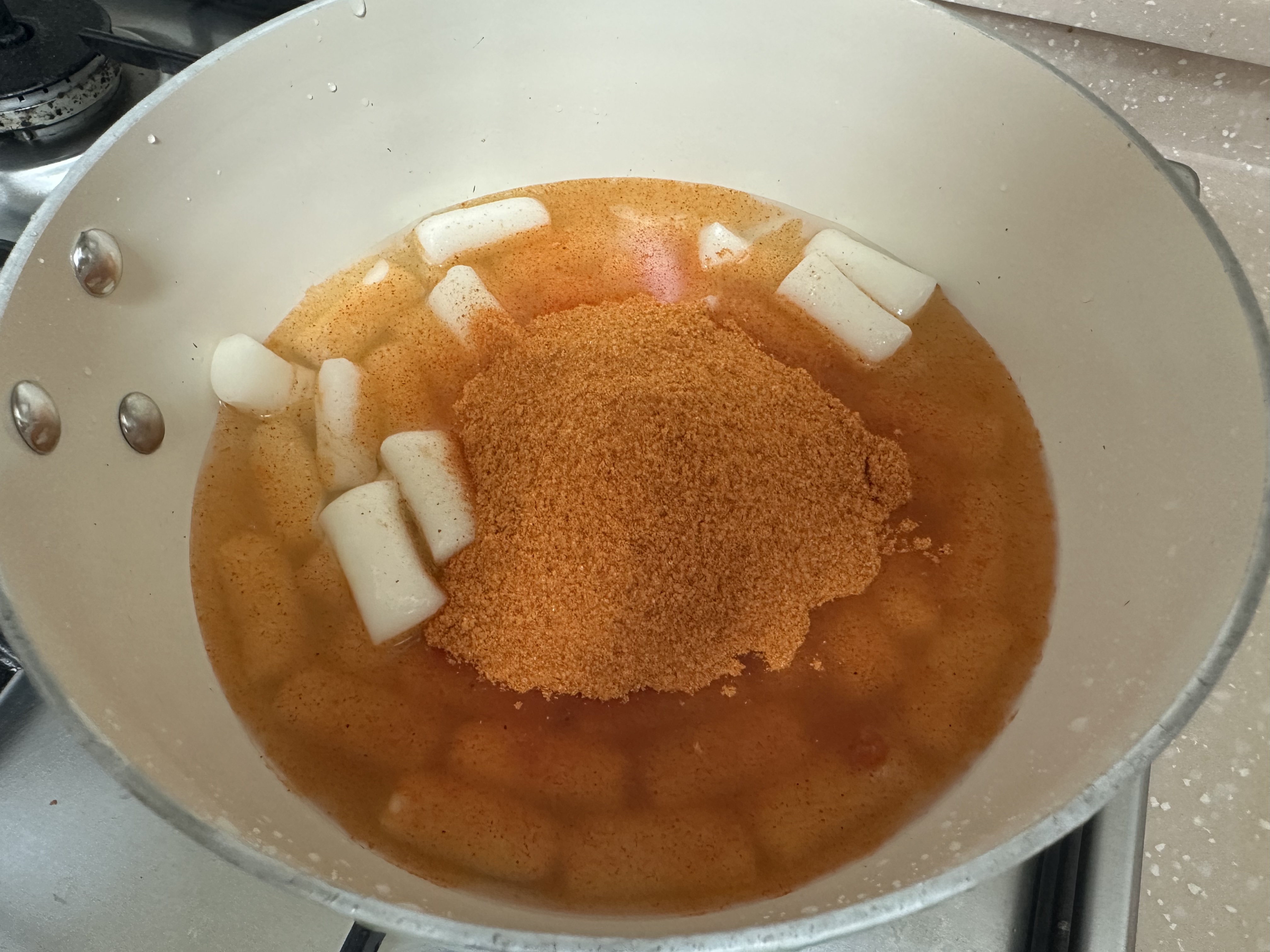 180ml 물에 스프와 떡을 함께 넣고 끓이기만 하면 끝!