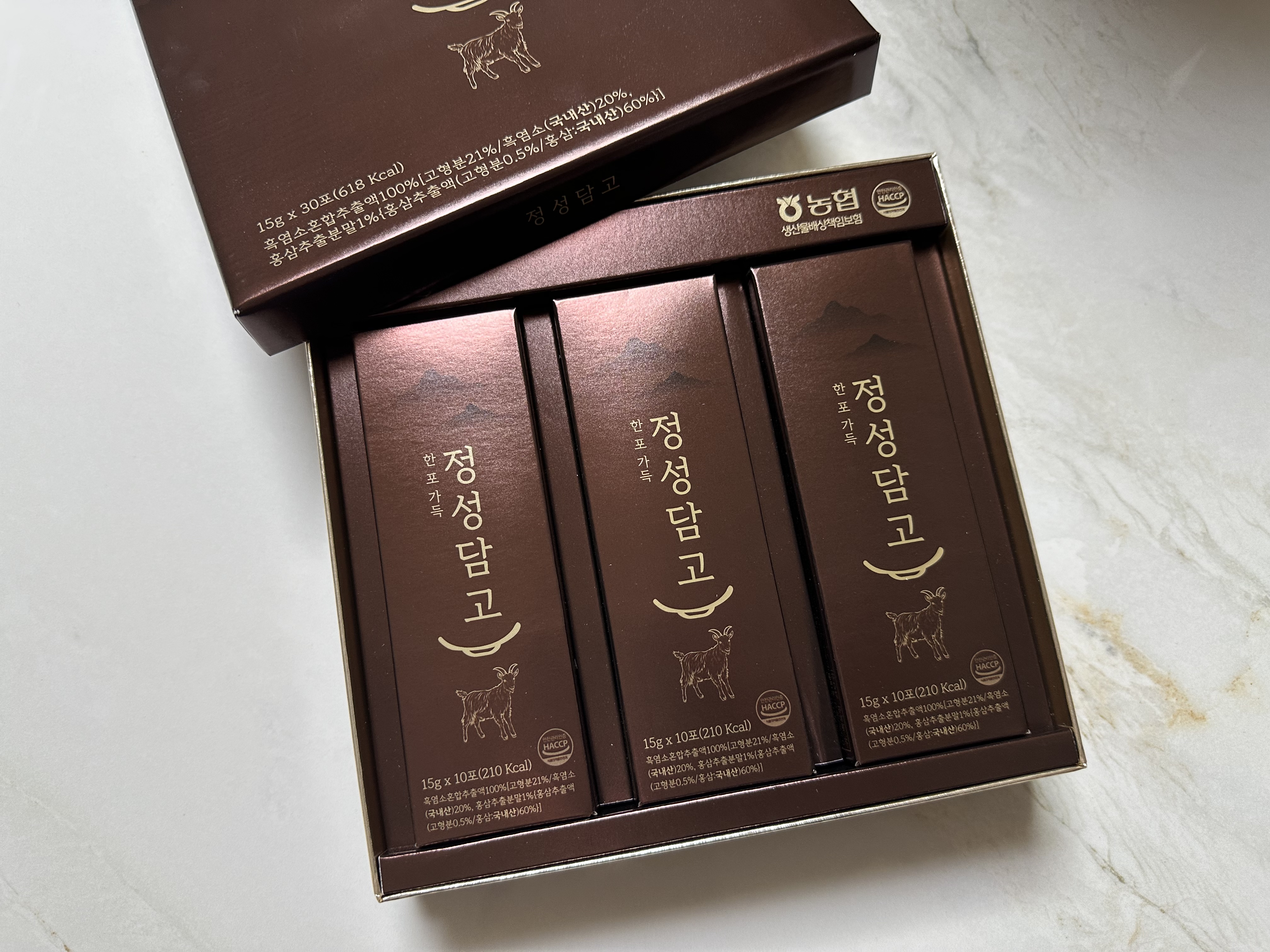 먼저 고민해보는 게 좋을 것 같아요. 정성담고 흑염소 진액은 포장도 좋고,