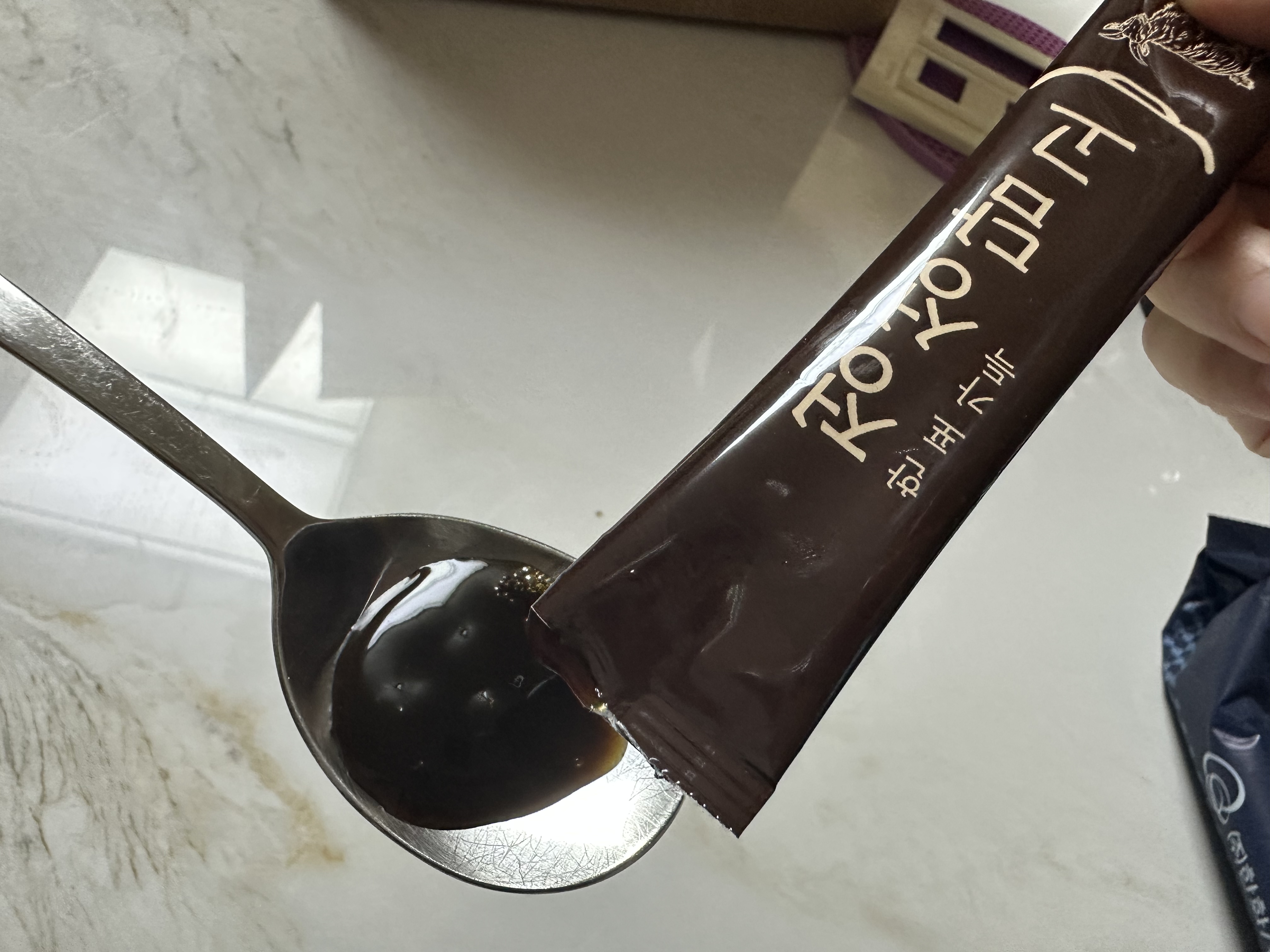 예상대로 쓴맛에 순간 얼굴을 찡그렸어요.