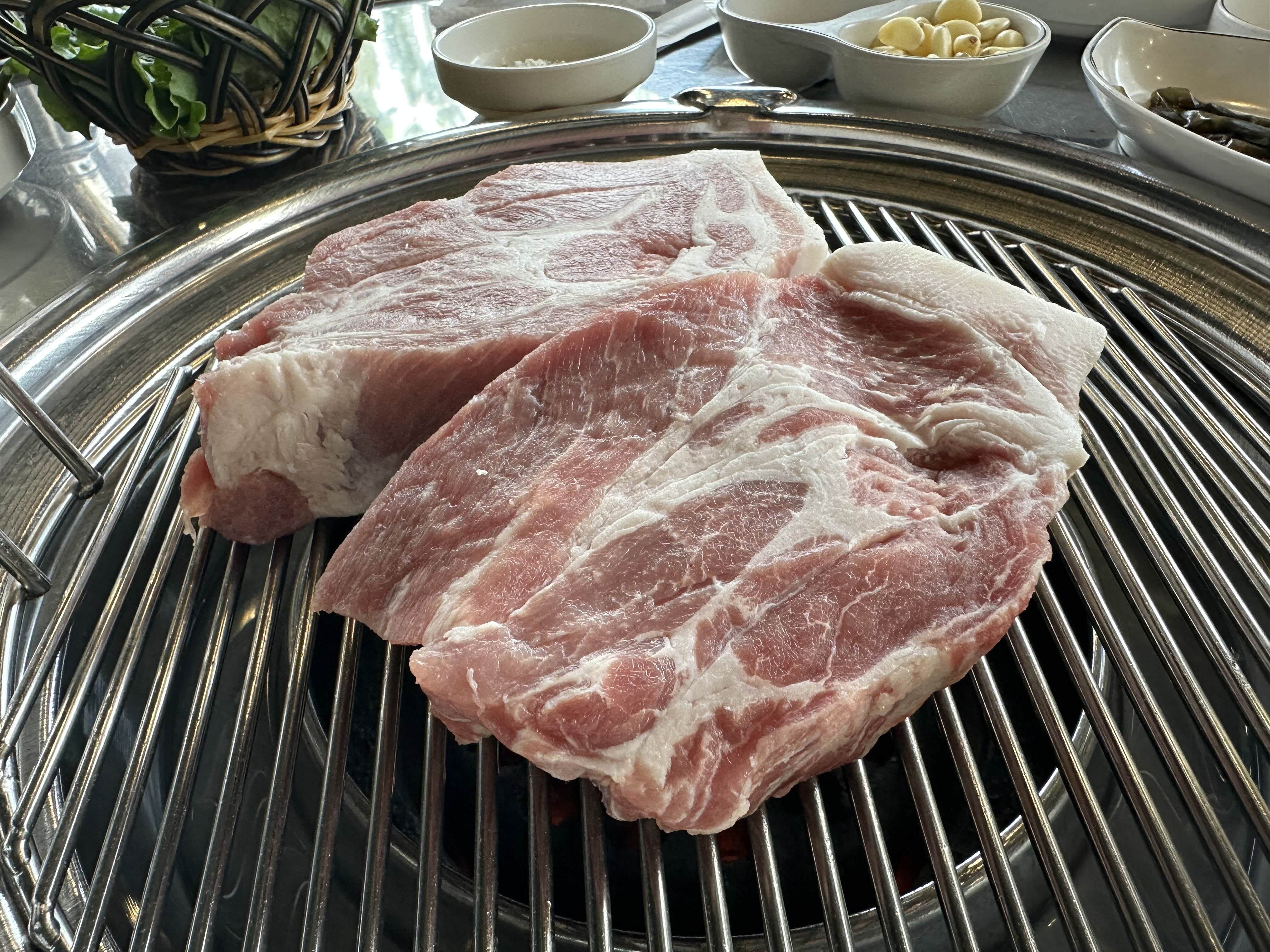고기는 불판에 올라가자마자 육즙이 가득 올라오고, 직원분이 직접 구워주셔서 정말 편했어요. 목살인데도 부드럽고 촉촉해서 아이들이 잘 먹었고, 시부모님도 너무 맛있으시다며 만족하셨어요. 역시 삼막사맛집으로 불릴 만한 이유가 있더라고요.