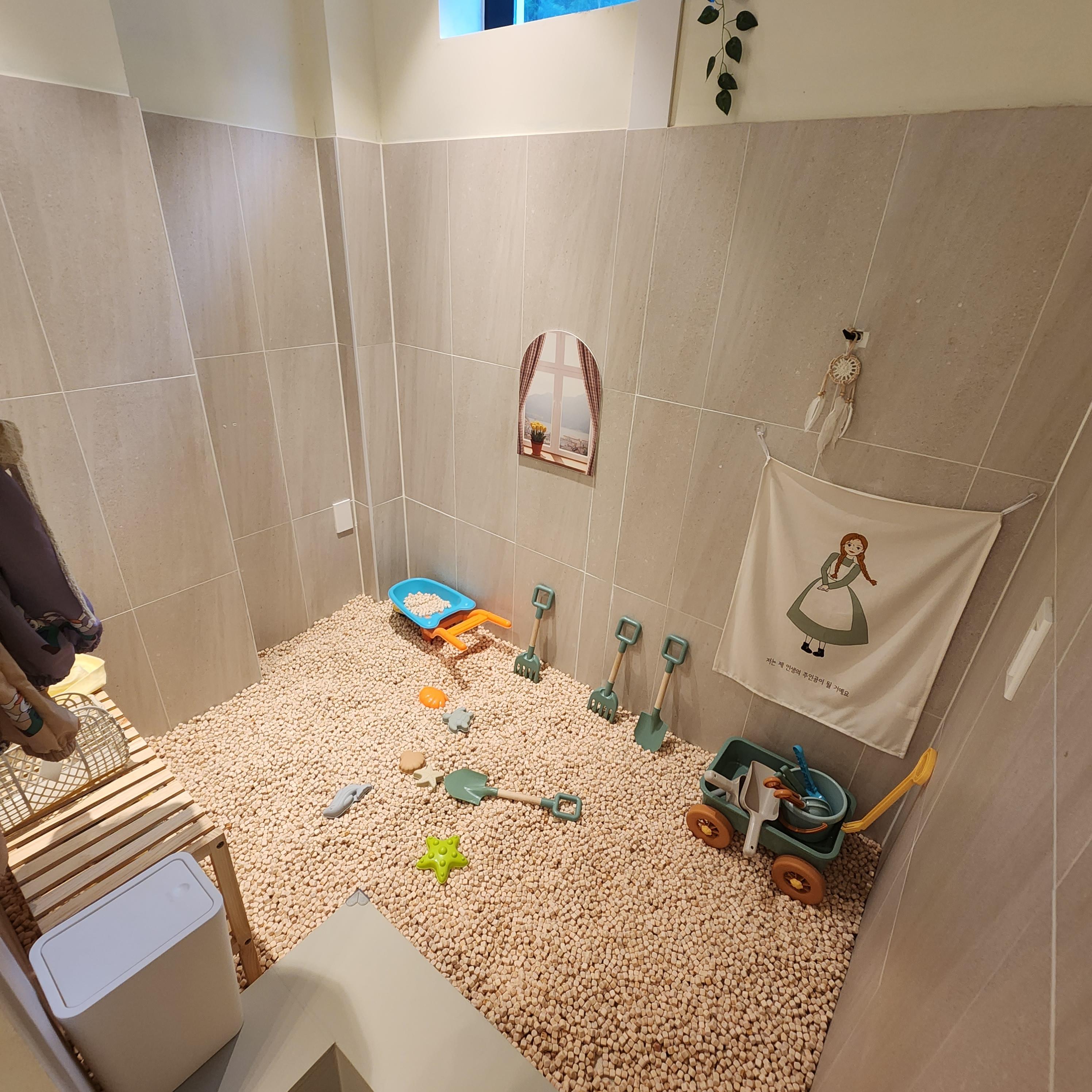 아이들 식기와 건조대, 정수기, 전자렌즈등 여러 가지가 준비되어 있고 아이들이 다쳤을 때를 대비해 구급상자까지 준비되어있는 세심함과 탈수기가 있어 바로 수영복을 건조해 가져갈 수 있어 좋네요