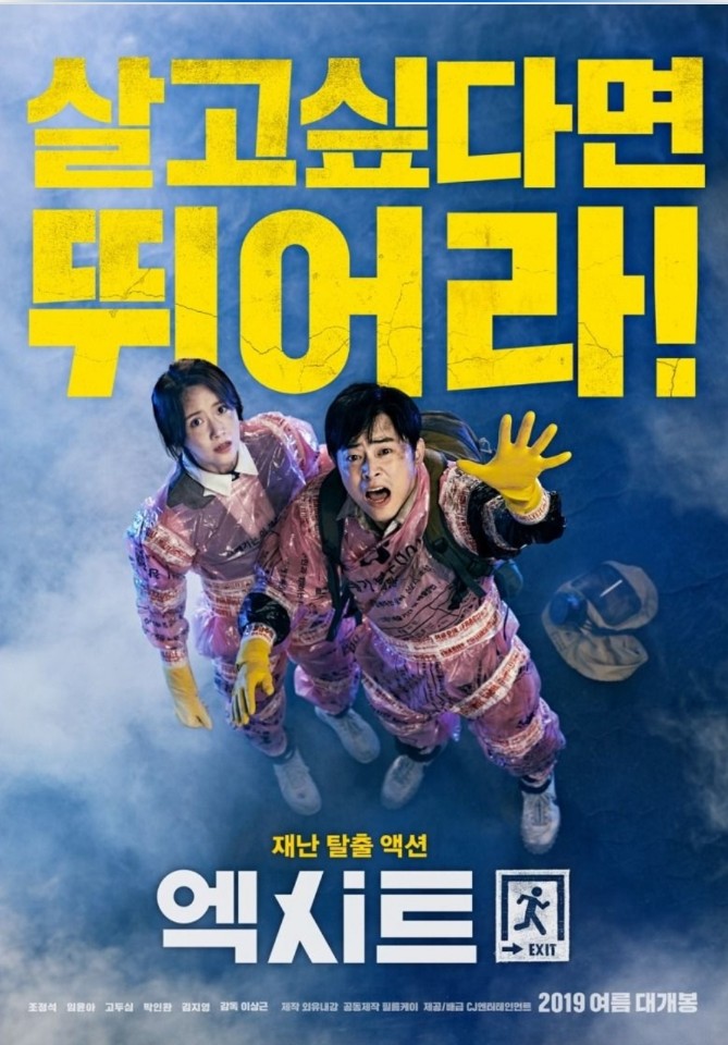 기대치가 낮았던 코미디 물로 비쳤던 엑시트는 시사회 반응과 개봉 후 좋은 평가를 받았습니다. 영화 엑시트는  대학 산악 동아리의 에이스 출신이자 계속되는 취업 실패로 눈칫밥을 먹고사는 청년백수 용남은 어머니의 칠순잔치에서 의문의 연기에 의해 혼란에 싸이며 재난을 만나게 됩니다. 용남과 의주는 산악 동아리 시절의 모든 체력과 스킬을 동원해 탈출을 향한 기지를 발휘하는 이야기입니다. 엑시트의 주연으로 조정석과 임윤아가 출연하였습니다.