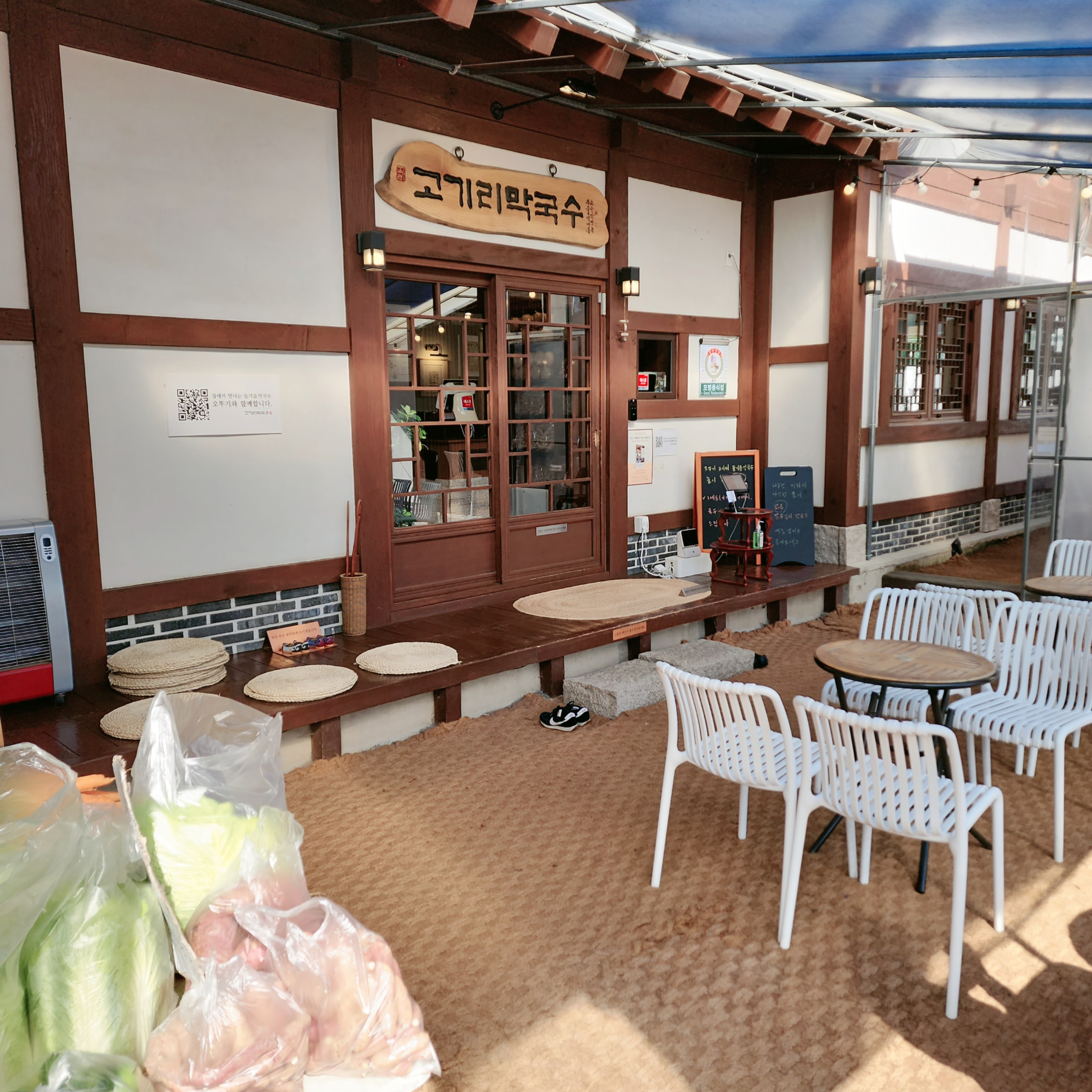 기다리시다 보면 물을 드시고 싶은 실 때도 계신데 밖에 정수기도 마련되어있고 외부에 화장실 마련되어 있습니다. 고기리 막국수는 웨이팅이 워낙 많은 곳이다 보니 외부에 테이블도 많이 있습니다.