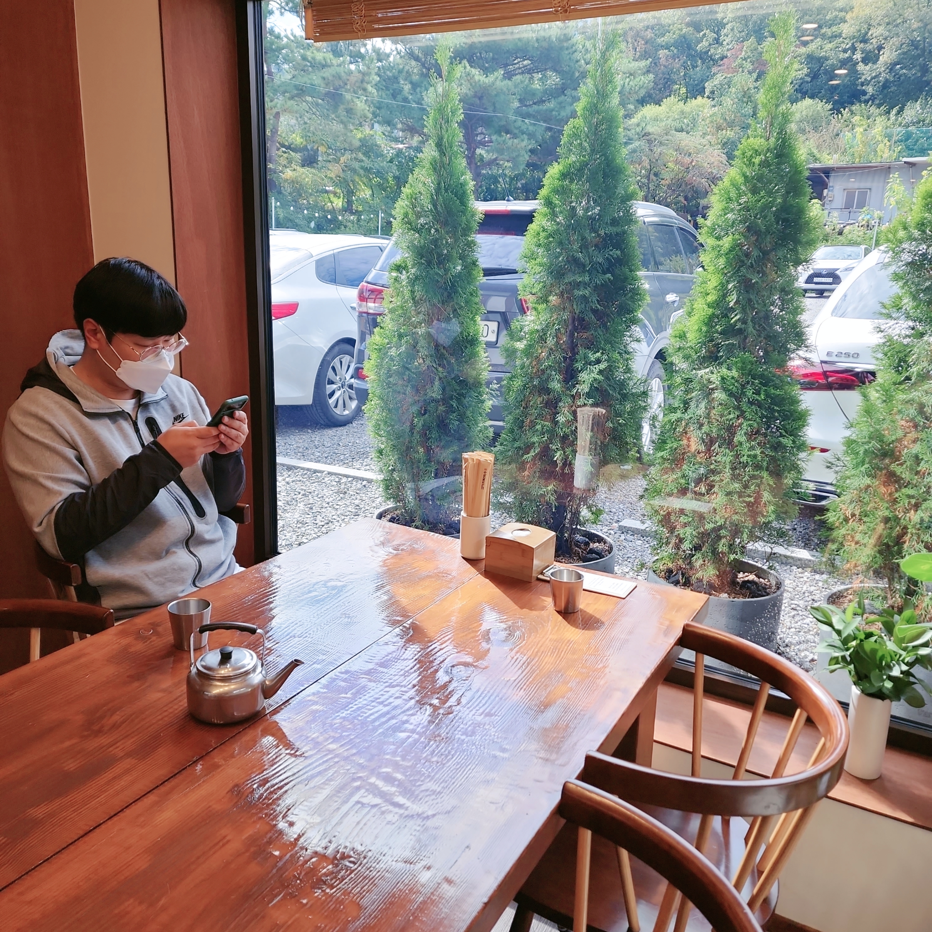 저희는 햇빛이 잘 드는 창가 자리로 주셨습니다. 오자마자 저희는 들기름 막국수를 주문합니다. 막국수를 먹고 추가로 막국수를 드실 때는 반값으로 막국수를 주문하실 수 있는데 들기름 막국수는 추가 막국수로 주문할 수 없기 때문에 제일 먼저 들기를 막국수를 주문합니다.