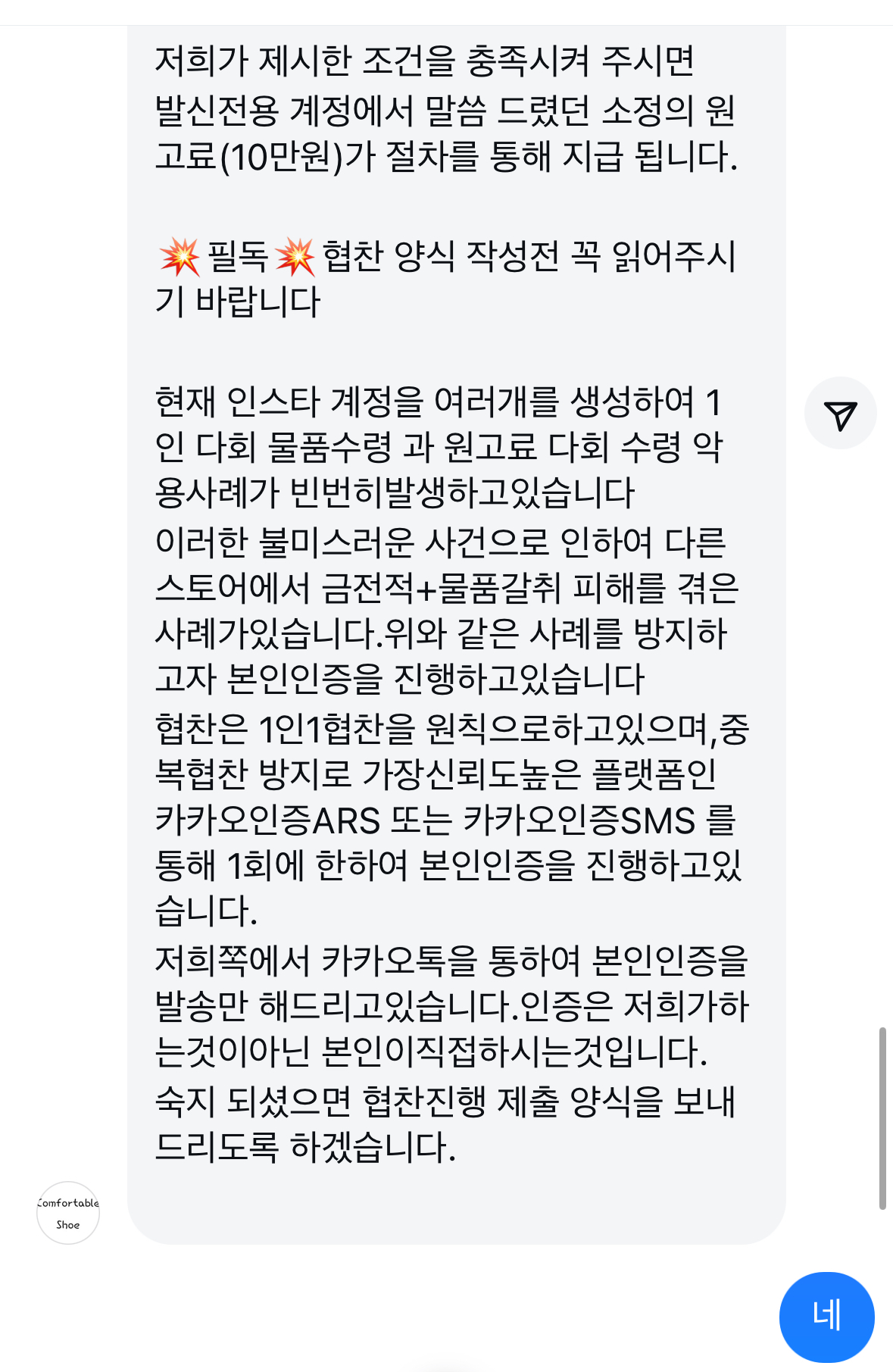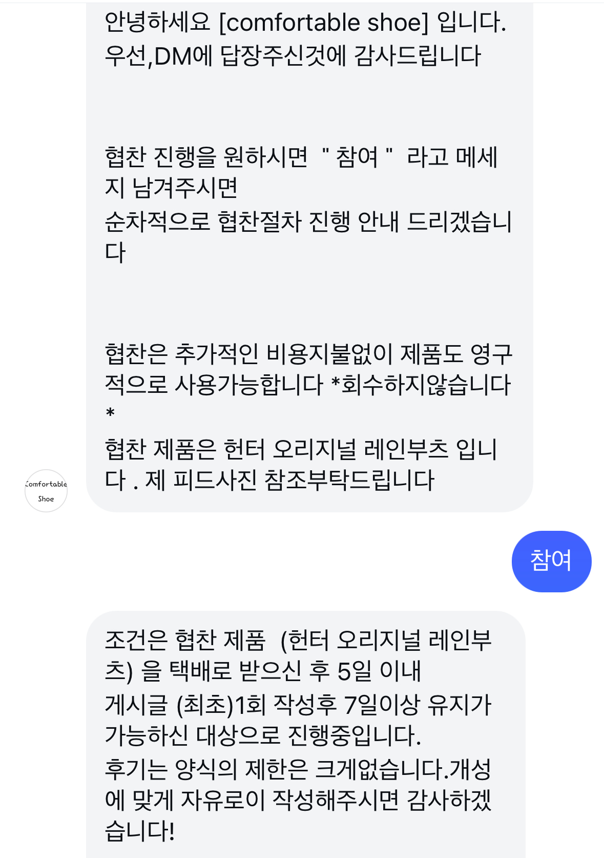 협찬을 받을것인지에 대해서 그럴싸하게 이야기를하고 답장은 복붙 한듯이 바로바로 연락이 옵니다.