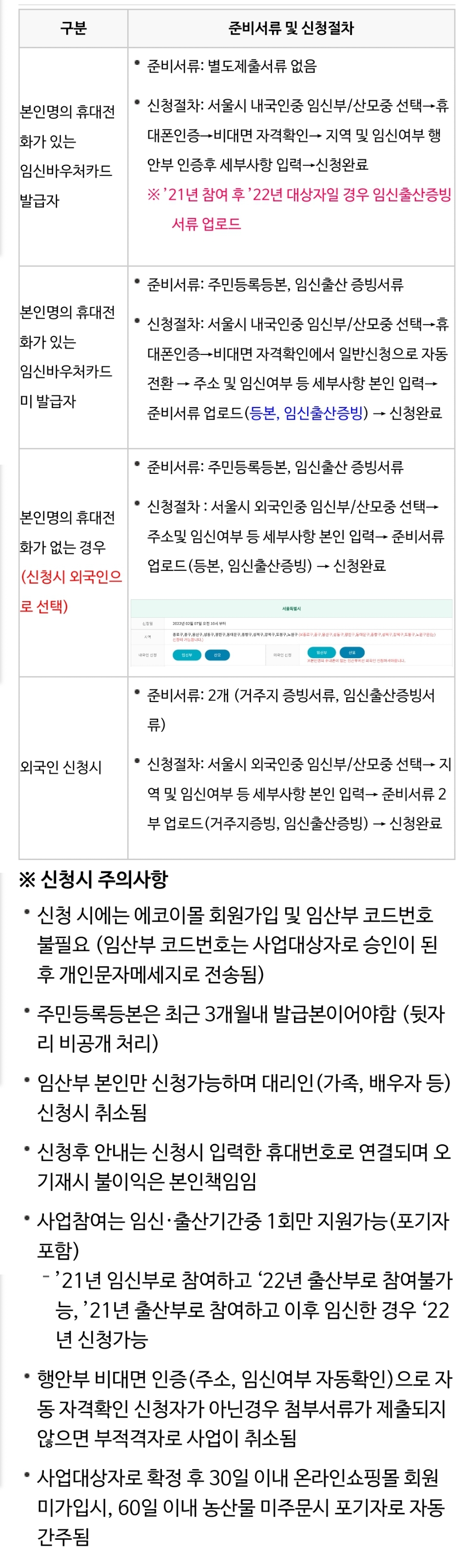 2022년 임산부 친환경 농산물 꾸러미 대상 사업내용