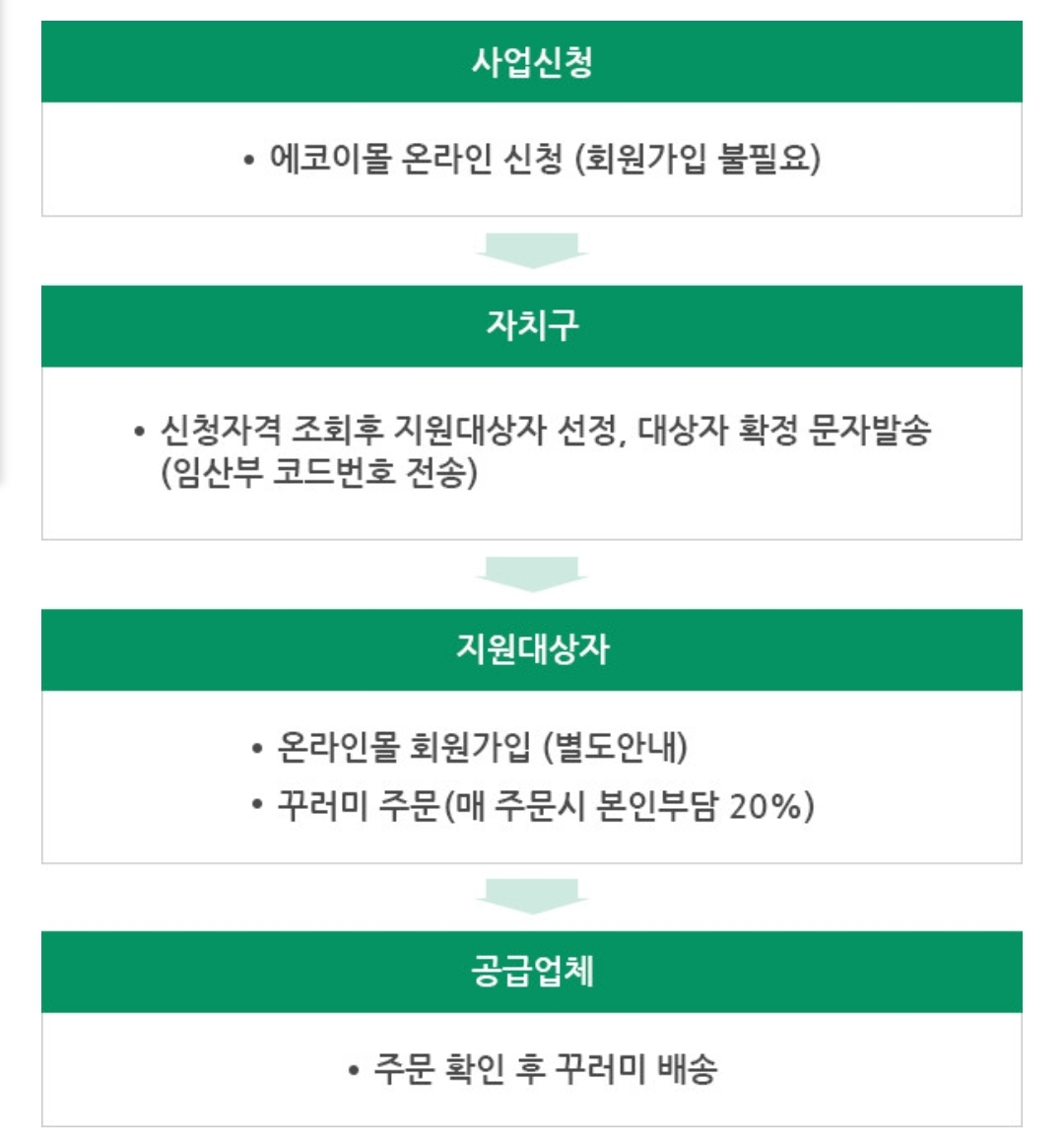 임산부 친환경 농산물 꾸러미는 매번 임신이나 출산 중에 한 번씩 신청이 가능한 사업입니다.
