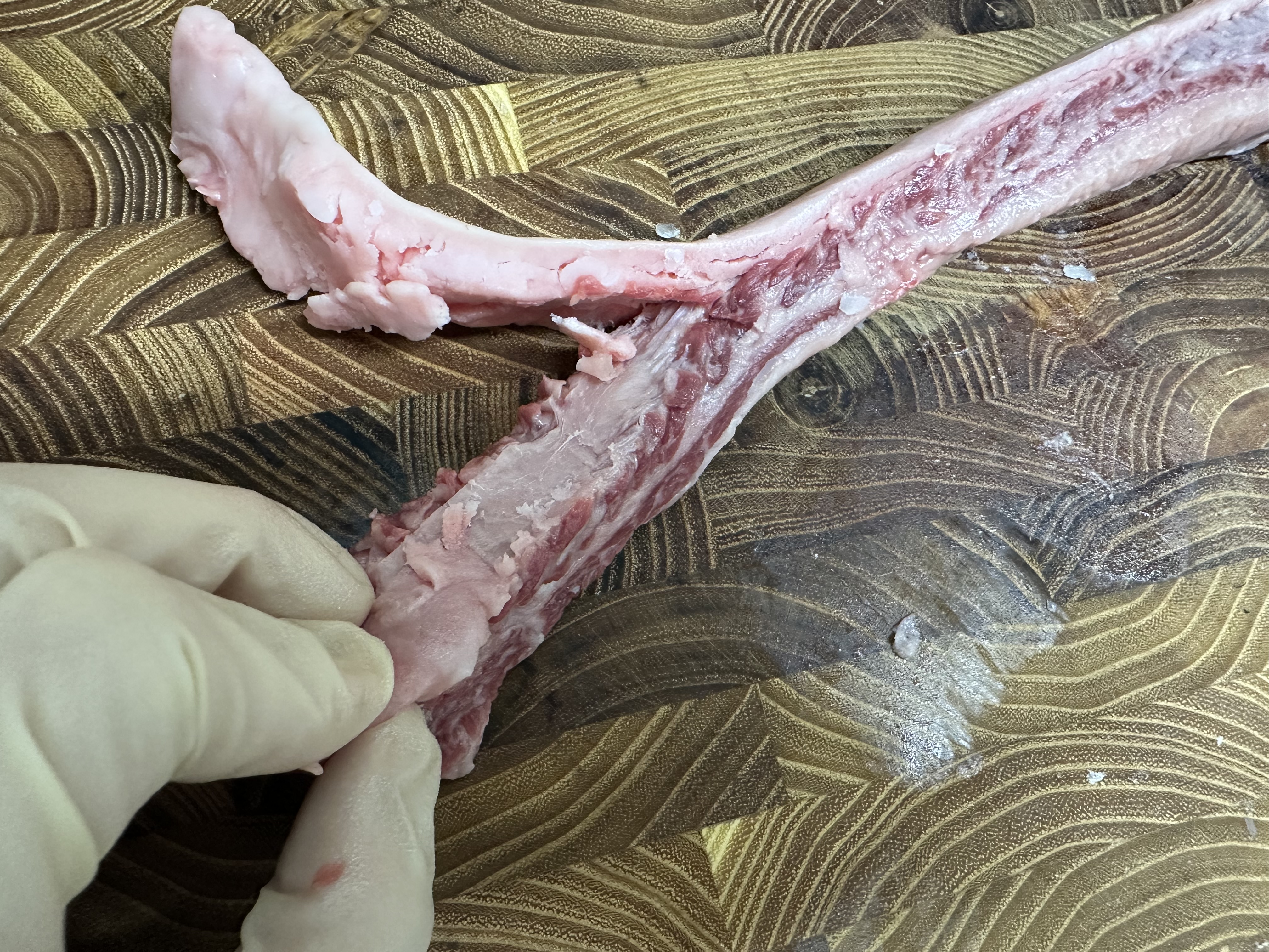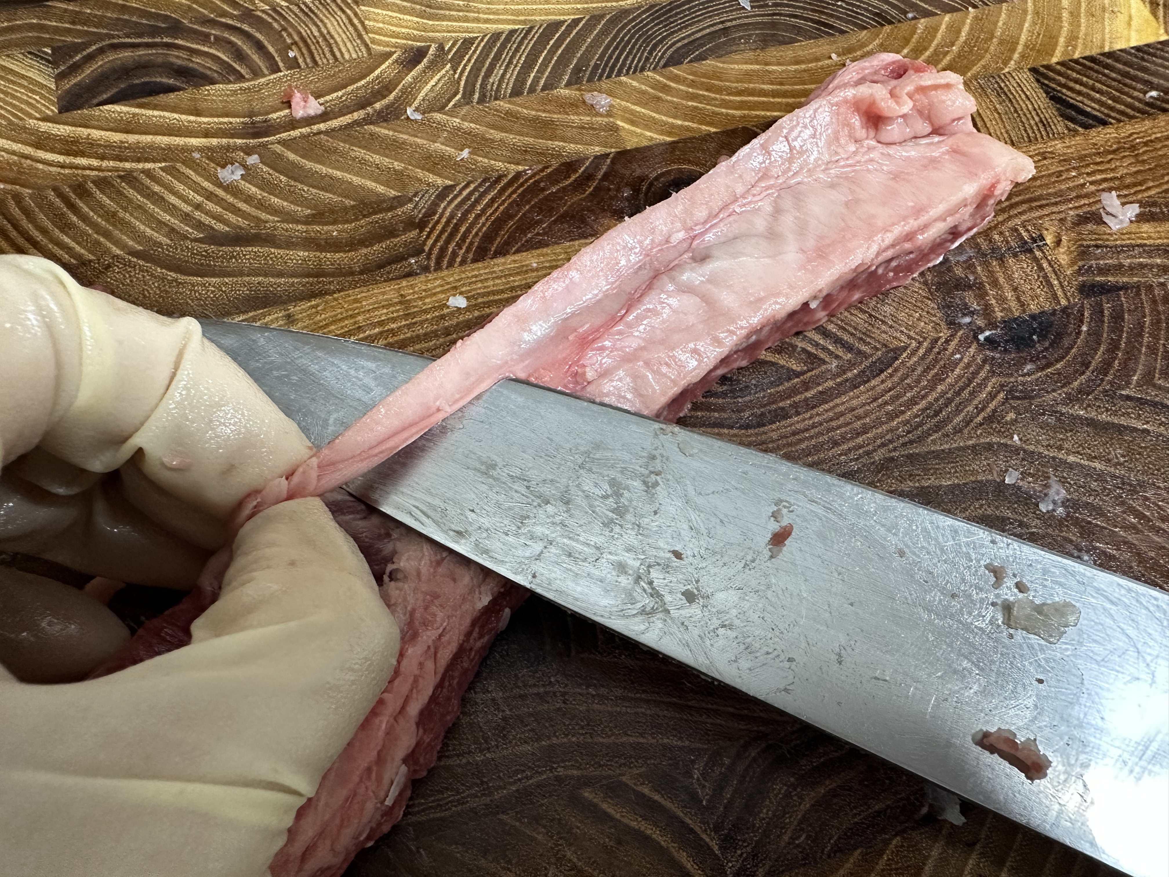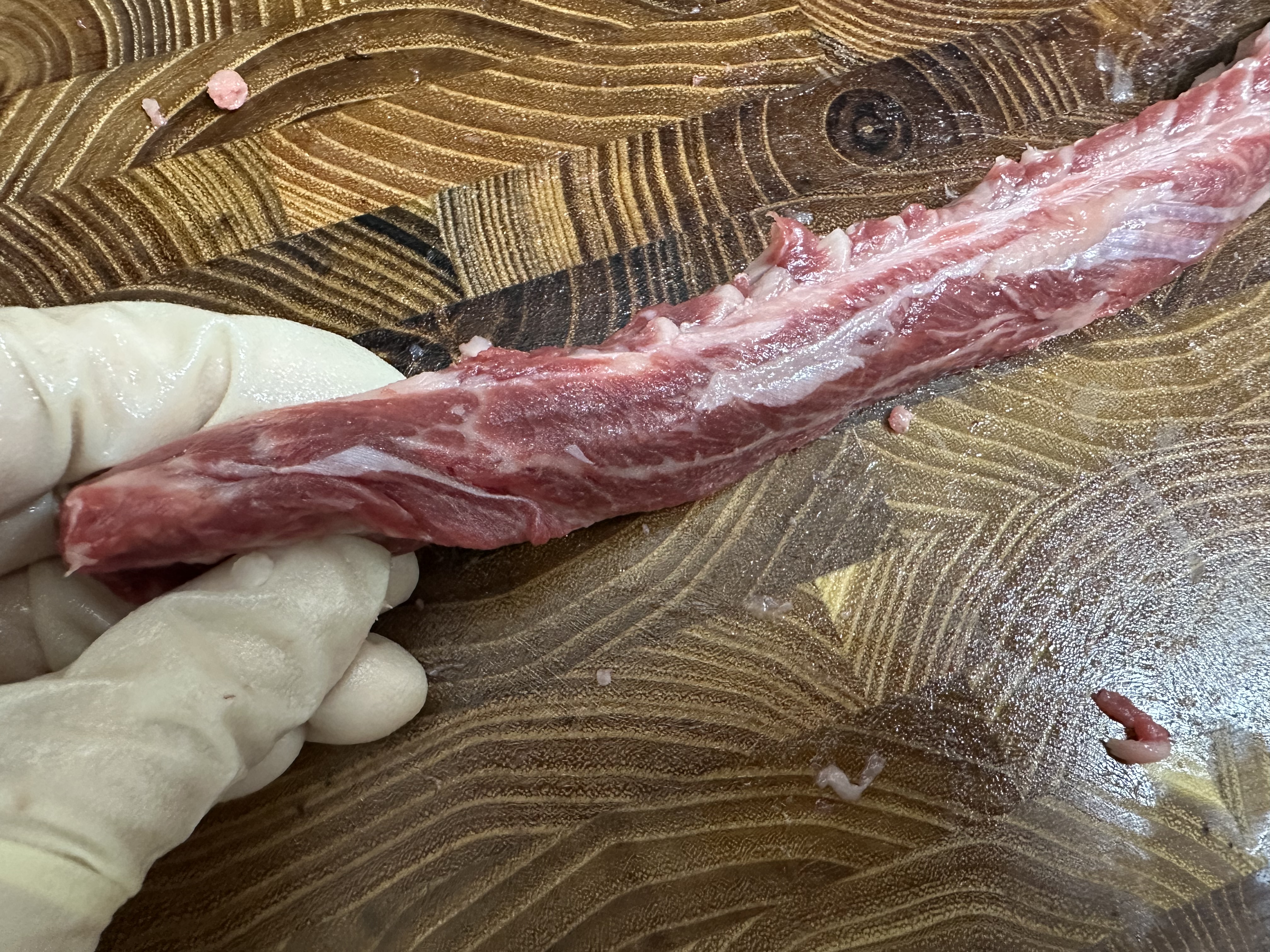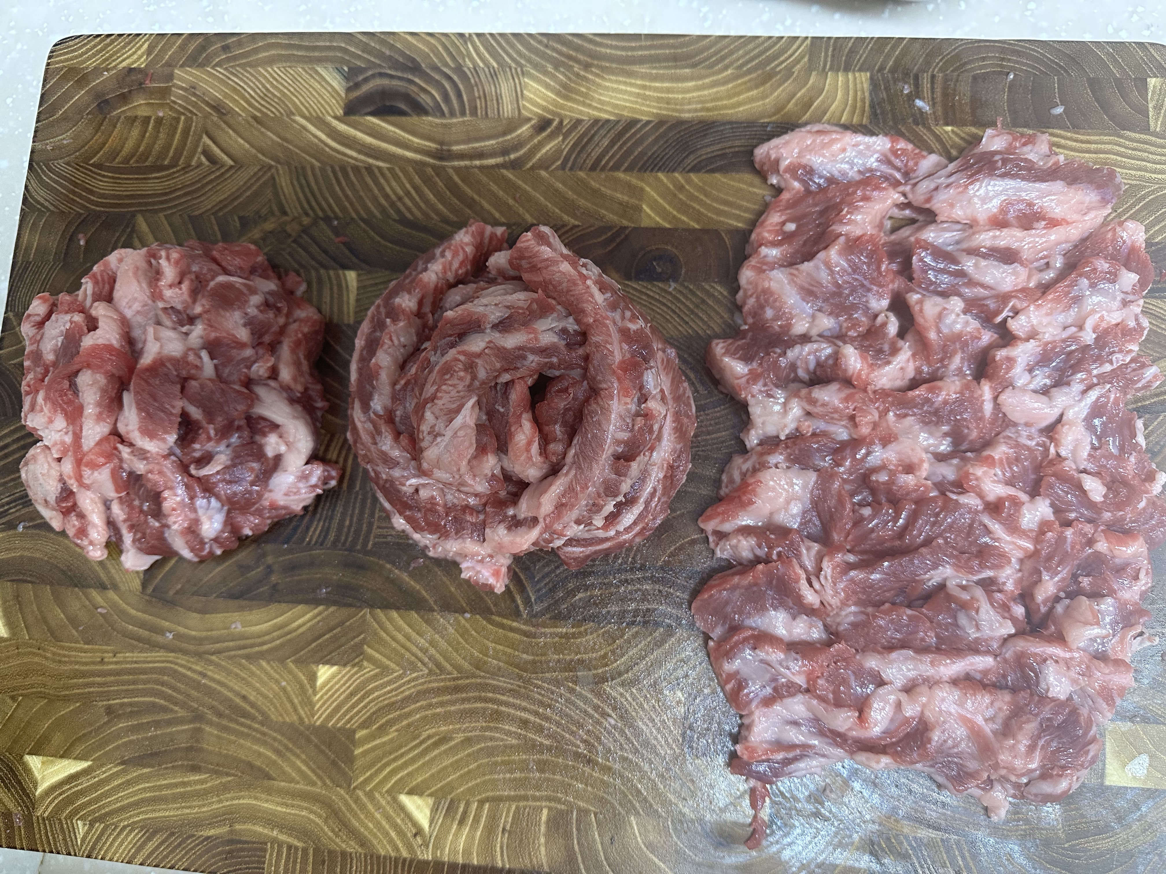 - 두께 분리: 고기 두께가 고르지 않기 때문에 먼저 얇은 부분과 두꺼운 부분을 나눕니다.