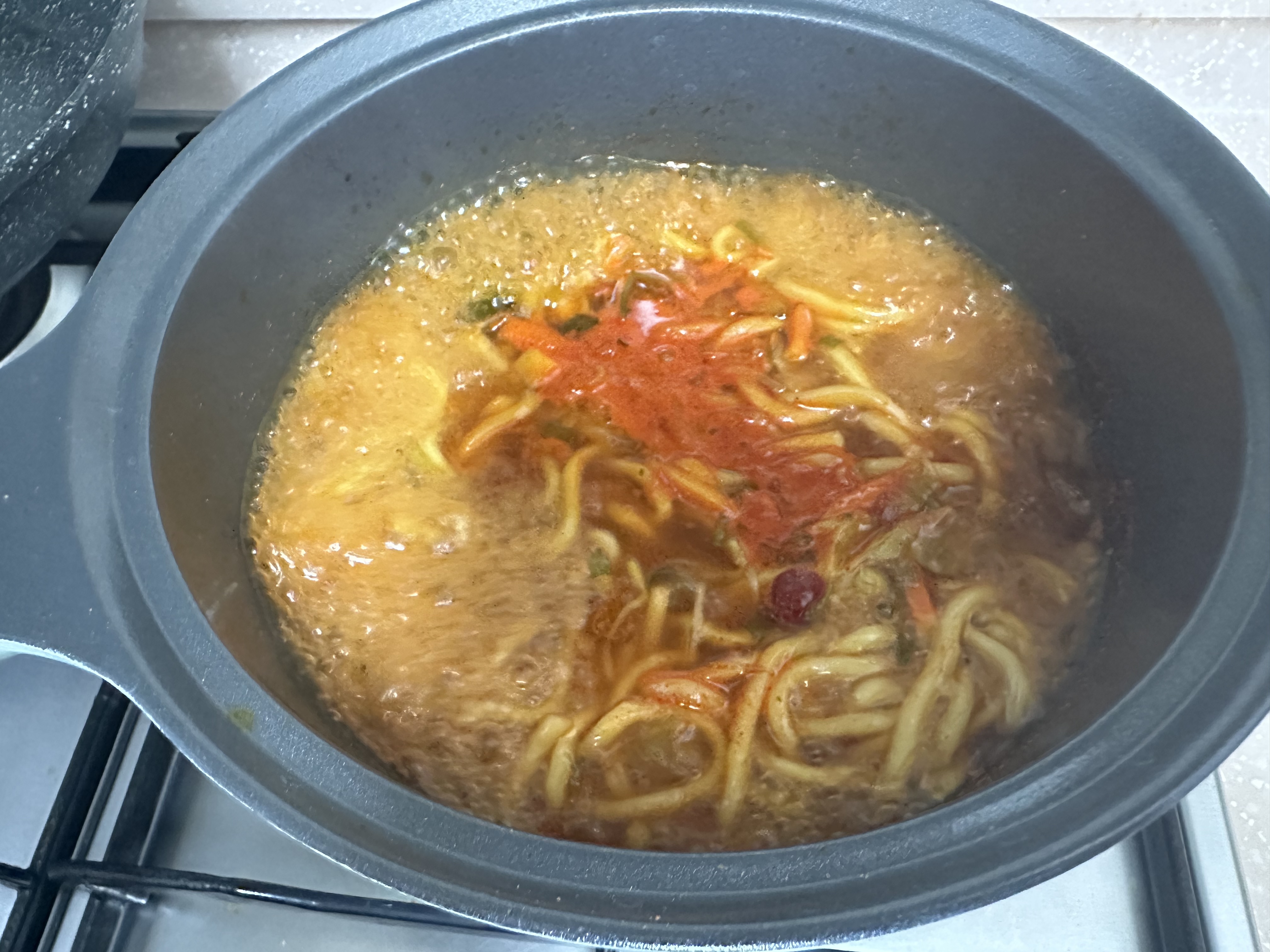 냄비에 육수를 끓인 후 면과 건더기를 넣고 몇 분만 끓이면 완성!