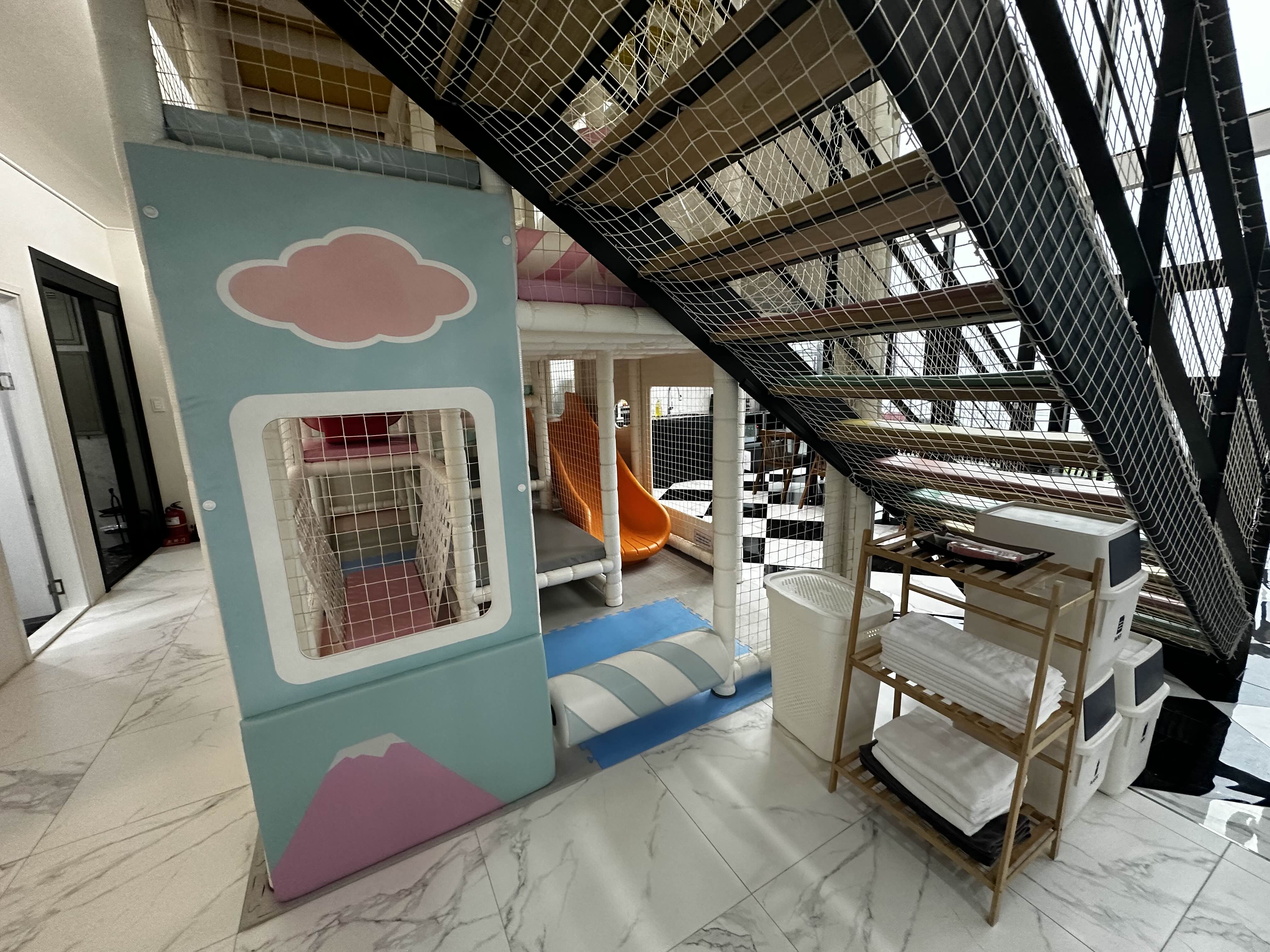 2층 방 앞쪽에는 놀이 공간이 있는데 사실 이곳을 아이들이 잘 이용하지는 않네요. 아이들이 좀 크기도 했고 보통 미끄럼틀과 방방에서 놀았습니다.