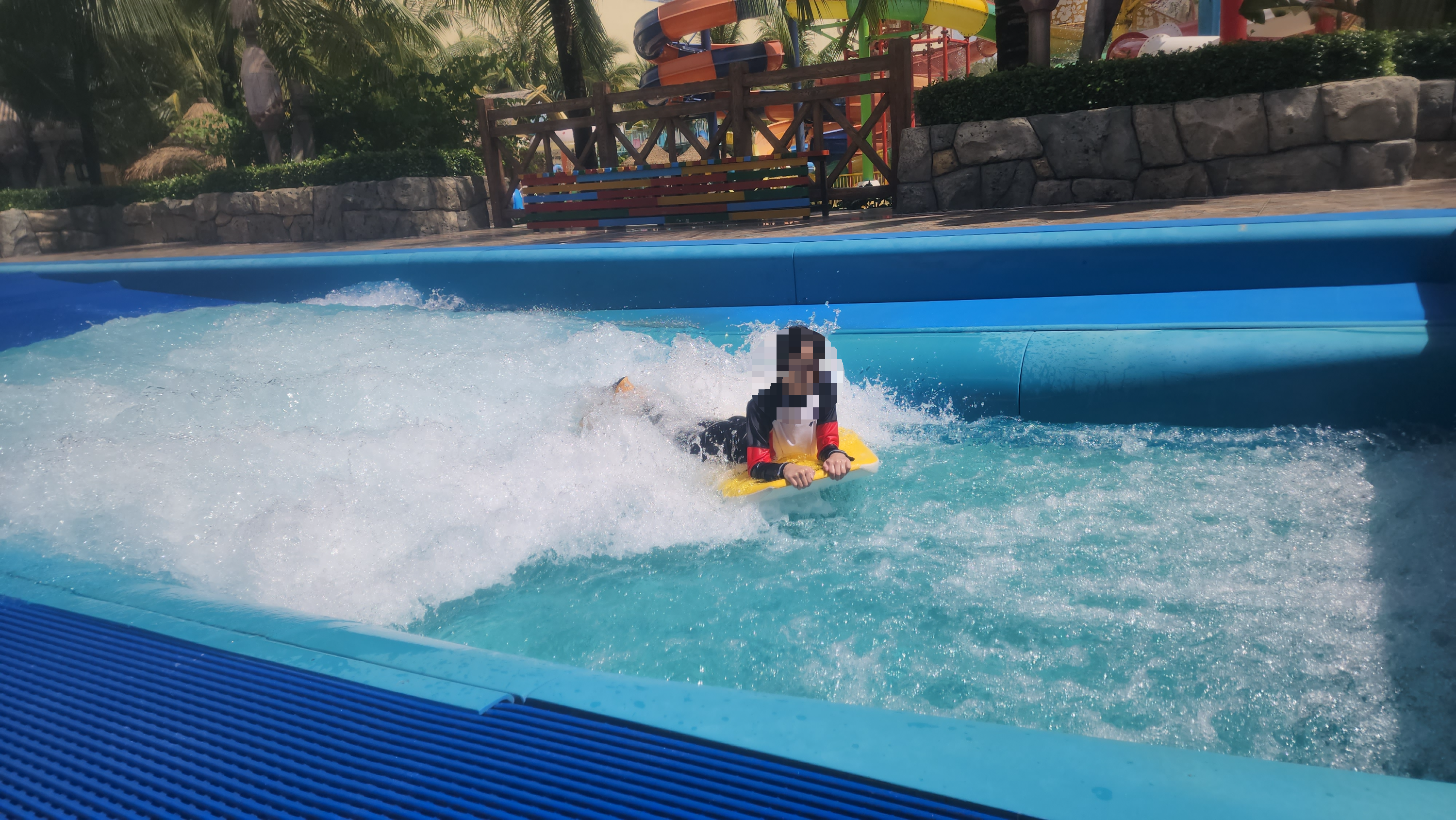 드디어 빈펄워터파크 입장! 입장하자마자 ‘와, 진짜 넓다!’는 감탄이 절로 나왔어요. 무엇보다도 사람이 거의 없어서 마치 전세 낸 것처럼 여유롭게 즐길 수 있었어요. 아이들이 좋아하는 미끄럼틀도 많았고, 파도풀은 생각보다 규모가 커서 실제 바다 같은 느낌이 들 정도였답니다.