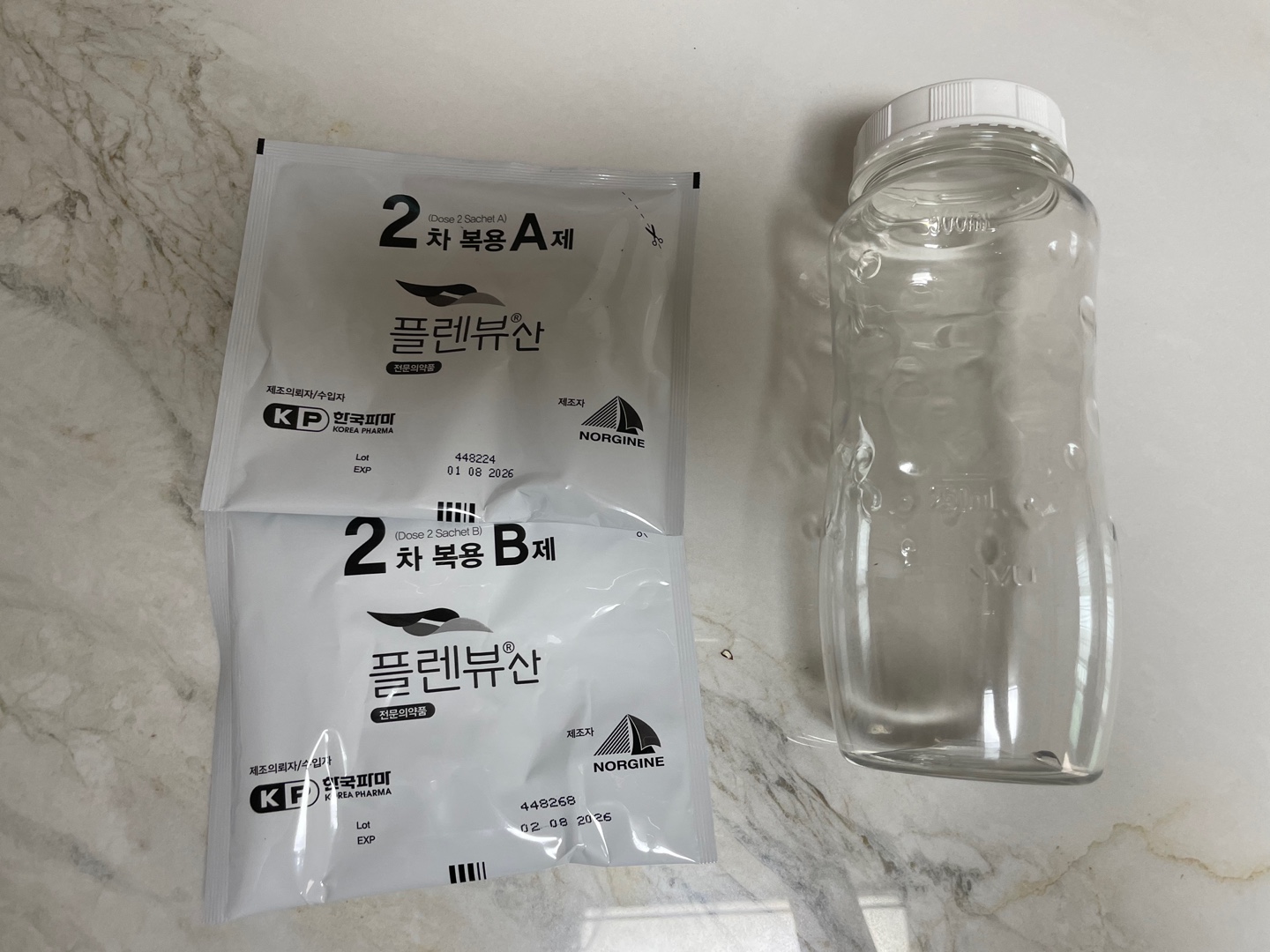 검사 전날 저녁, 본격적으로 내시경약복용법에 따라 약을 복용하기 시작했습니다.