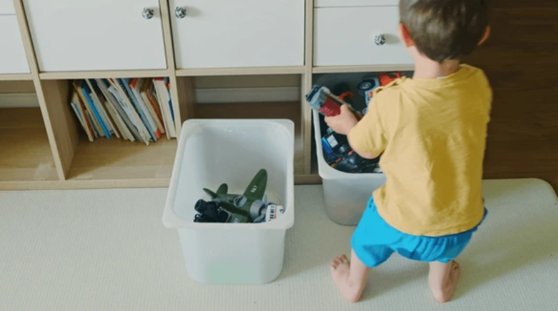 ‘장난감 바구니에 넣기’, ‘책 제자리에 꽂기’ 같은 활동을 게임처럼 만들면 아이들도 재밌어해요.